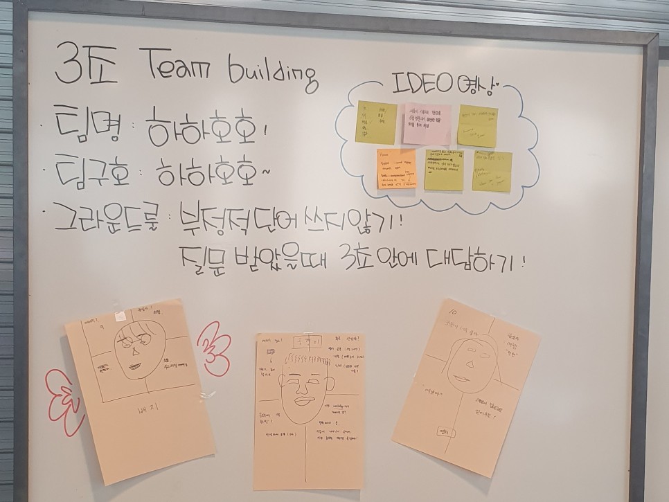 이어 팀 명과 팀 구호, 그라운드 룰을 정하면 팀 별 디자인씽킹 준비는 끝이 납니다.