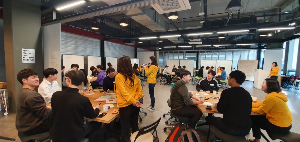 노란 옷을 입고 있는 퍼실리테이터분들이 진행에 있어 어려운 부분이 생기면 팁을 알려주는 등 각 팀을 이끌어 주신다는 점이 좋았습니다.