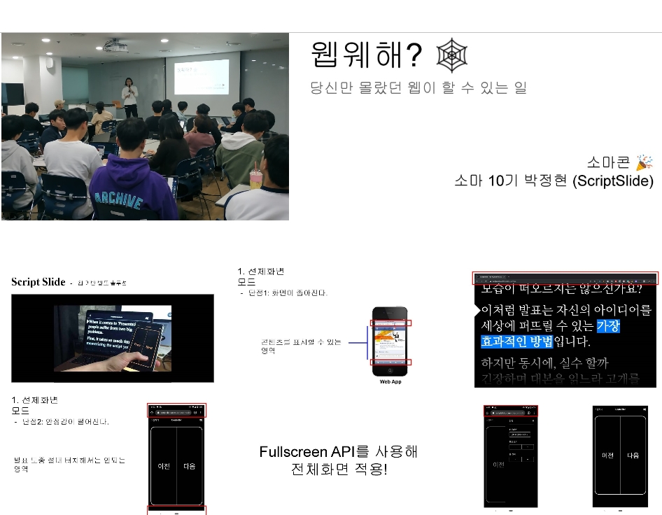 웹 서비스 ScriptSlide를 개발하면서 알게된 웹의 최신 기술들(블루투스, 전체화면, 스마트폰 카메라 접근 등) 소개