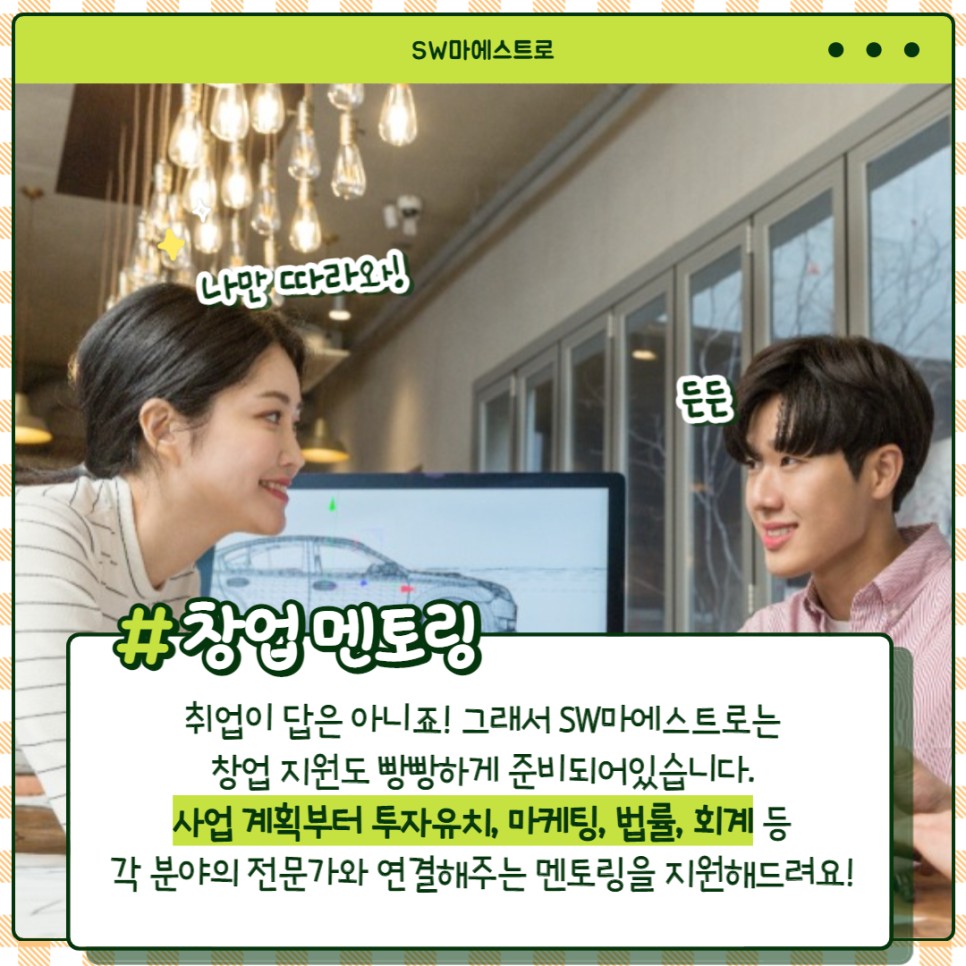 그래서 SW마에스트로에서는 창업 지원도 빵빵하게 준비했답니다.