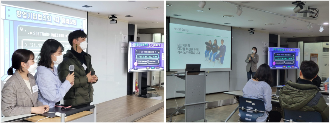 창업기업협의회 4차 정례모임의 본격적인 시작은 SW마에스트로 12기 연수생 팀 GDD의 발표로 시작되었습니다.