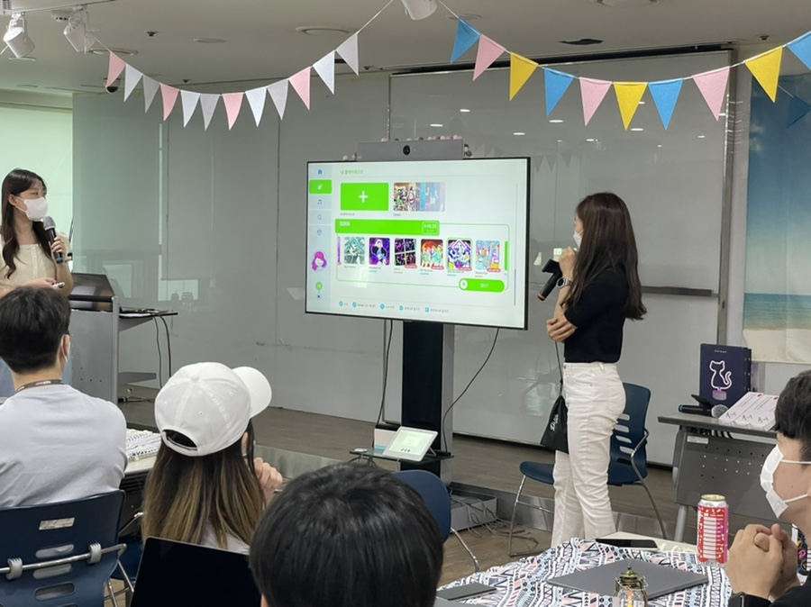 정해진 음악에 맞게 춤을 추며 게임을 진행했습니다!
