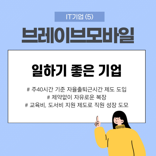 일하기 좋은 기업 그 다섯번째는 #브레이브모바일 입니다. 약간 다소 생소해보일 수도 있는 기업명,