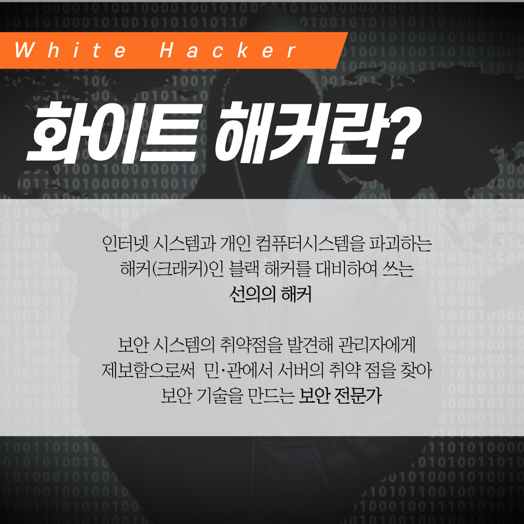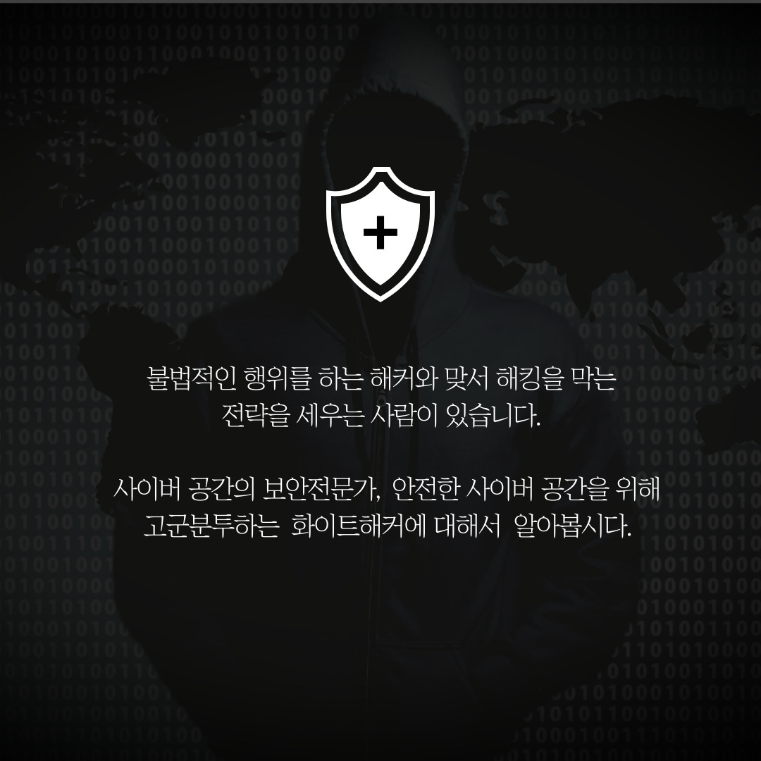 오늘은 사이버 공간의 보안전문가, 안전한 사이버 공간을 위해 고군분투하는 화이트해커에 대해 알아보겠습니다.