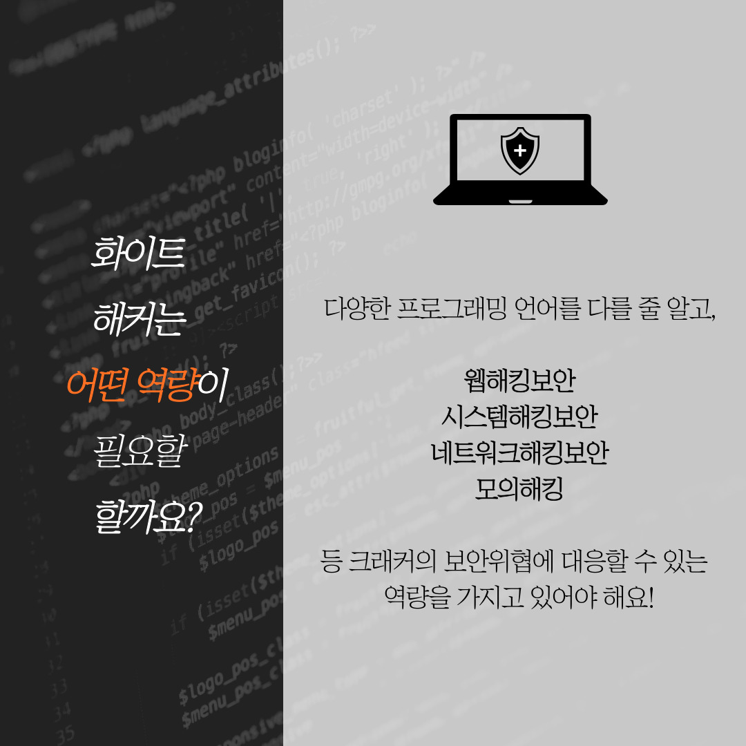 보안을 위협하는 블랙해커에 맞서 보안기술을 만드는 화이트해커!