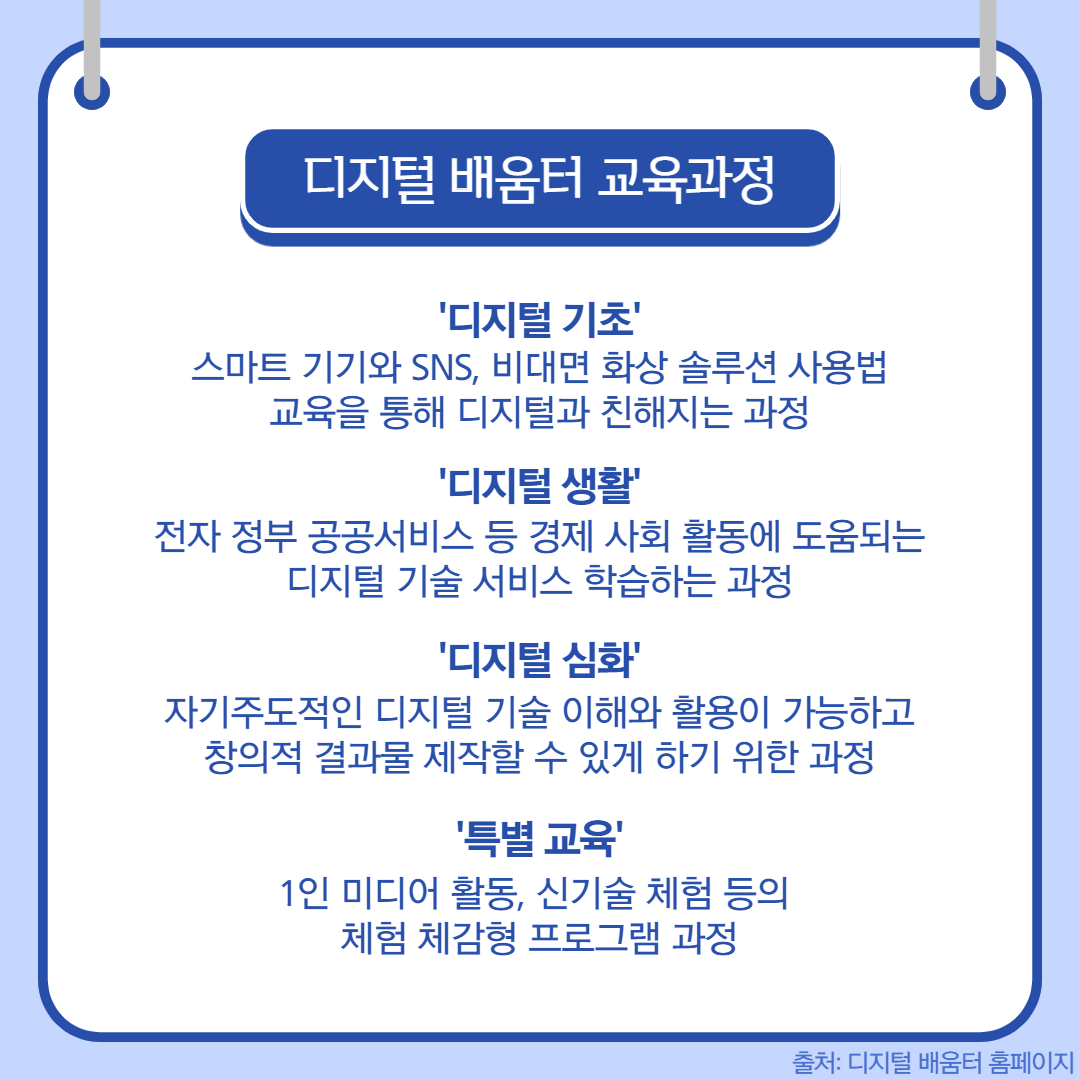 지금까지 ‘디지털 배움터’가 무엇인지, 교육과정은 어떻게 되는지를 살펴봤는데요,