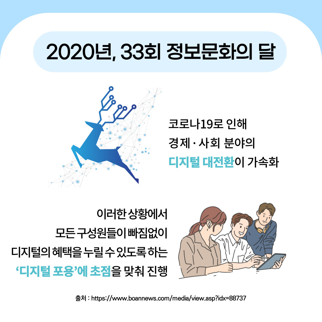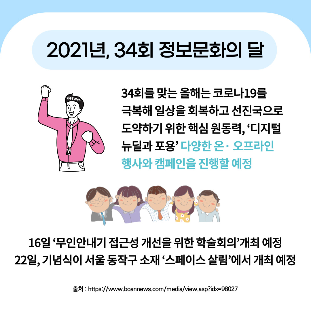 올해 2021년 34회 정보문화의 달은 코로나19를 극복해 일상을 회복하고 선진국으로 도약하기 위한