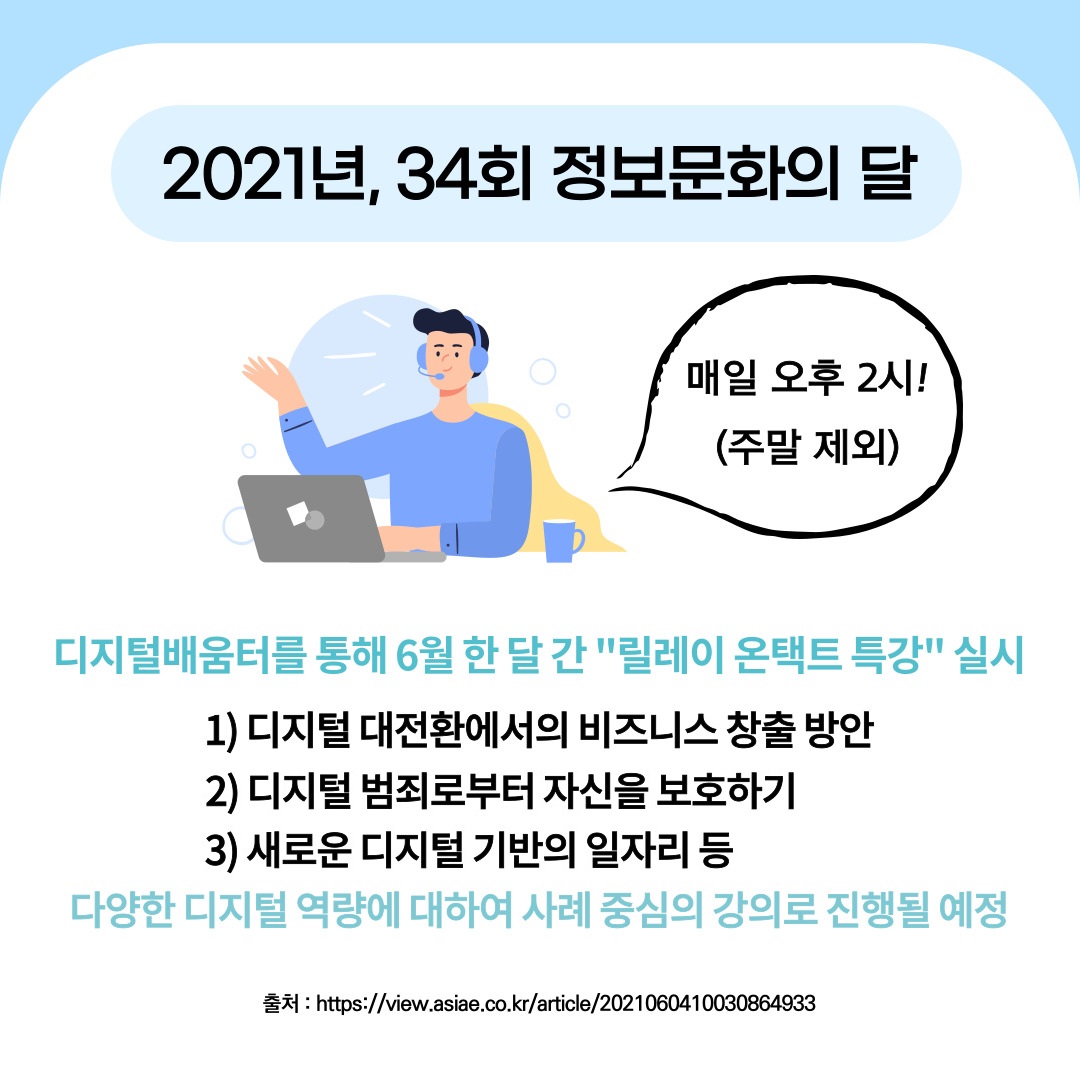 또한 디지털배움터를 통해 6월 한 달 간 “릴레이 온택트 특강”이 실시되는데요.