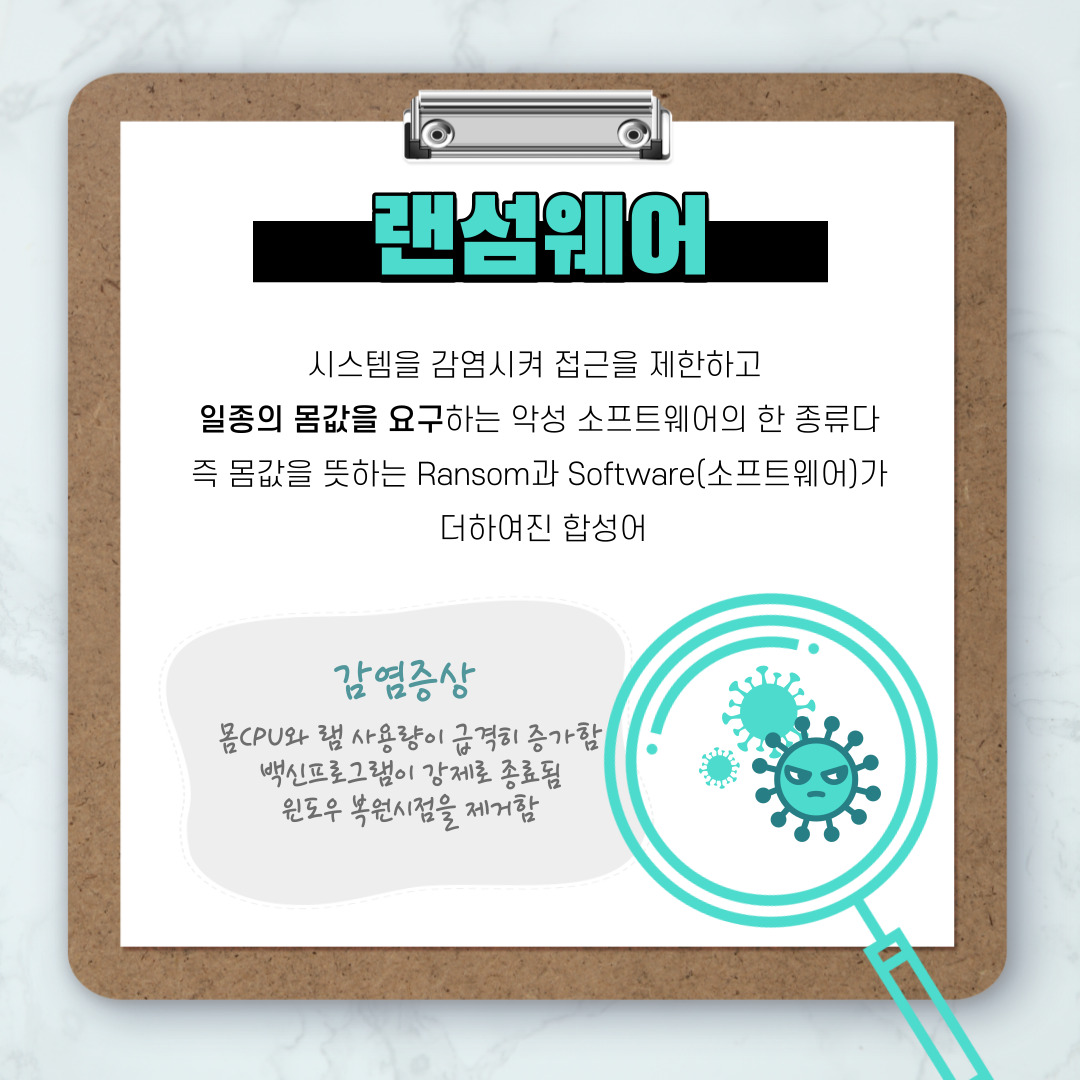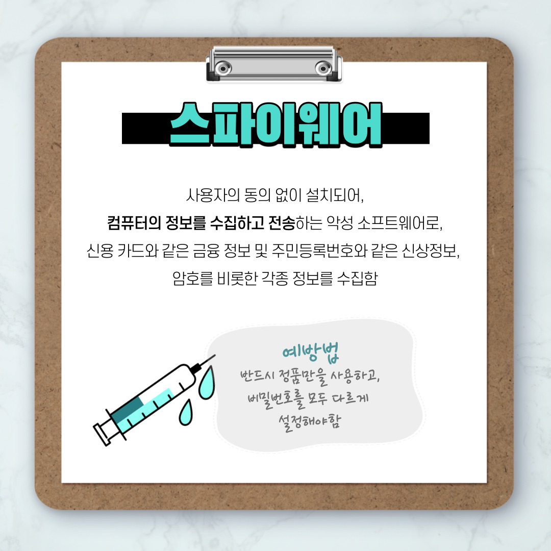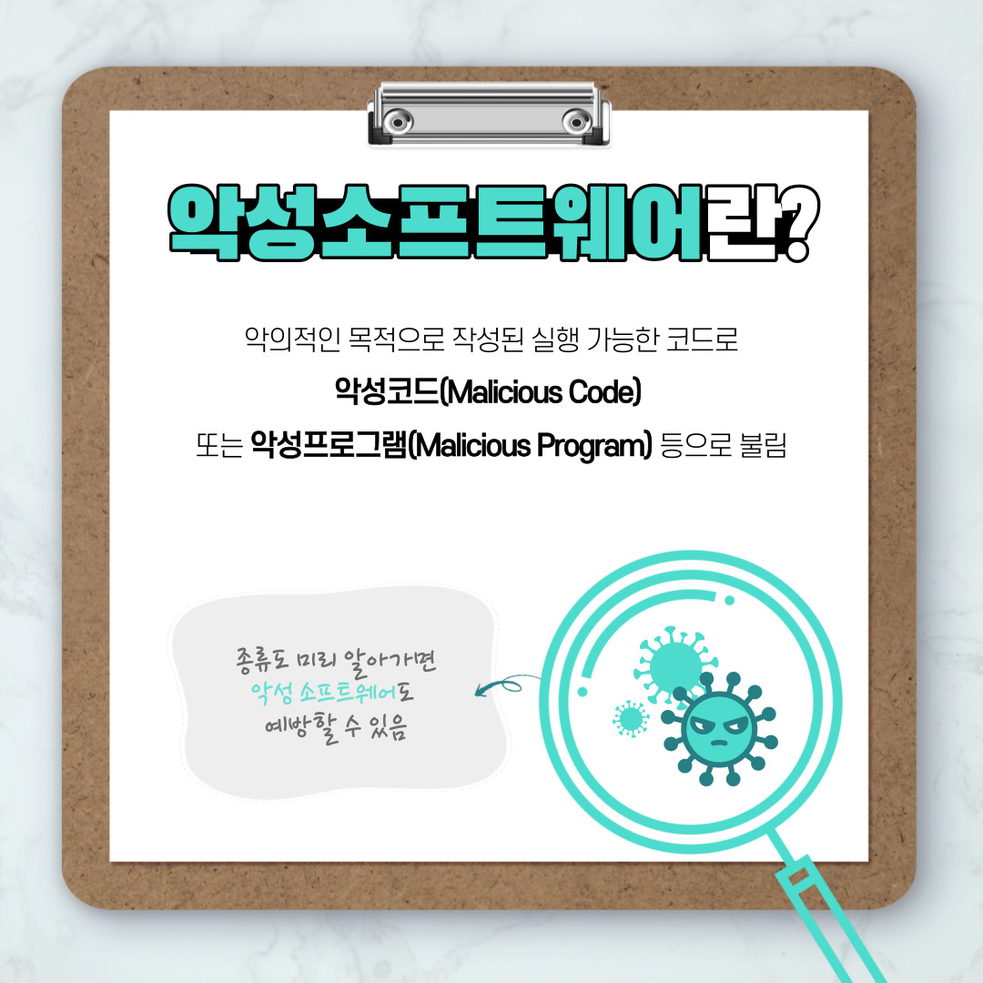 어떤 종류의 악성 소프트웨어가 있는지 알아두고, 함께 악성 소프트웨어를 예방하고 조심해봐요!