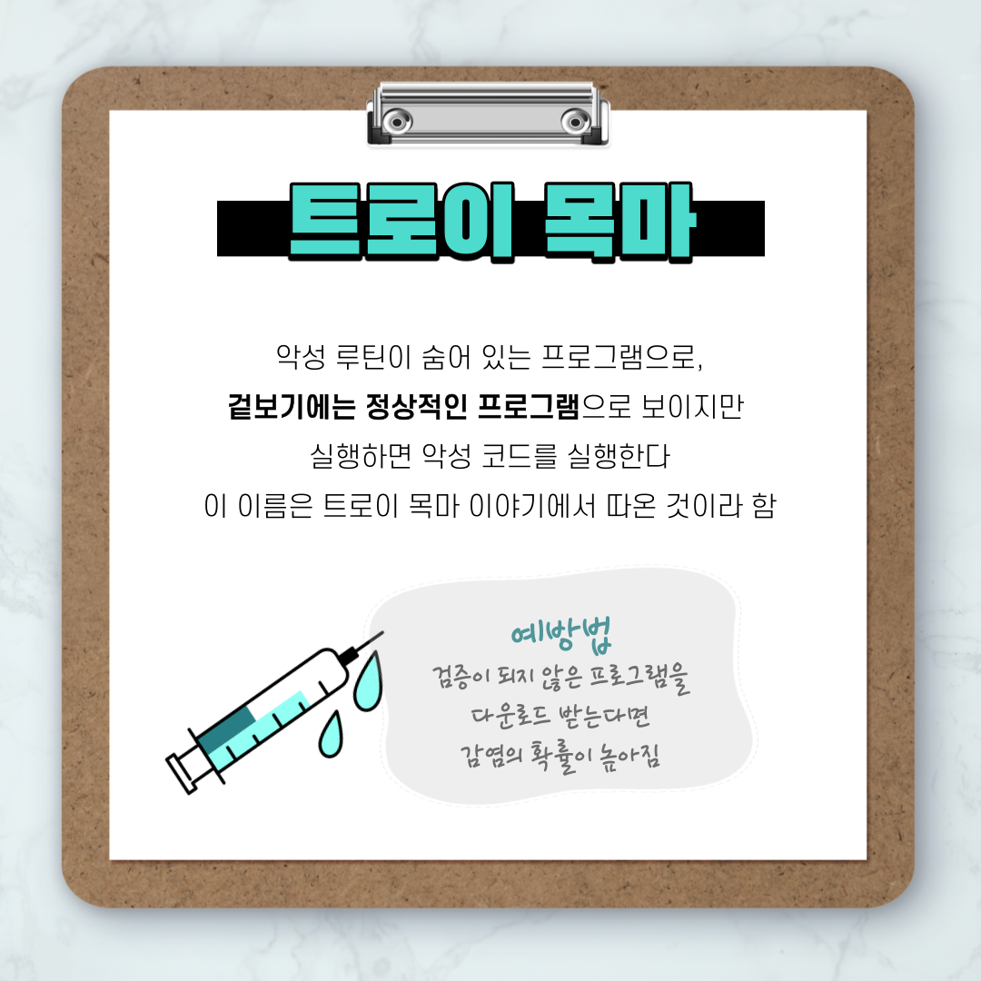 트로이목마는 악성 루틴이 숨어 있는 프로그램으로
