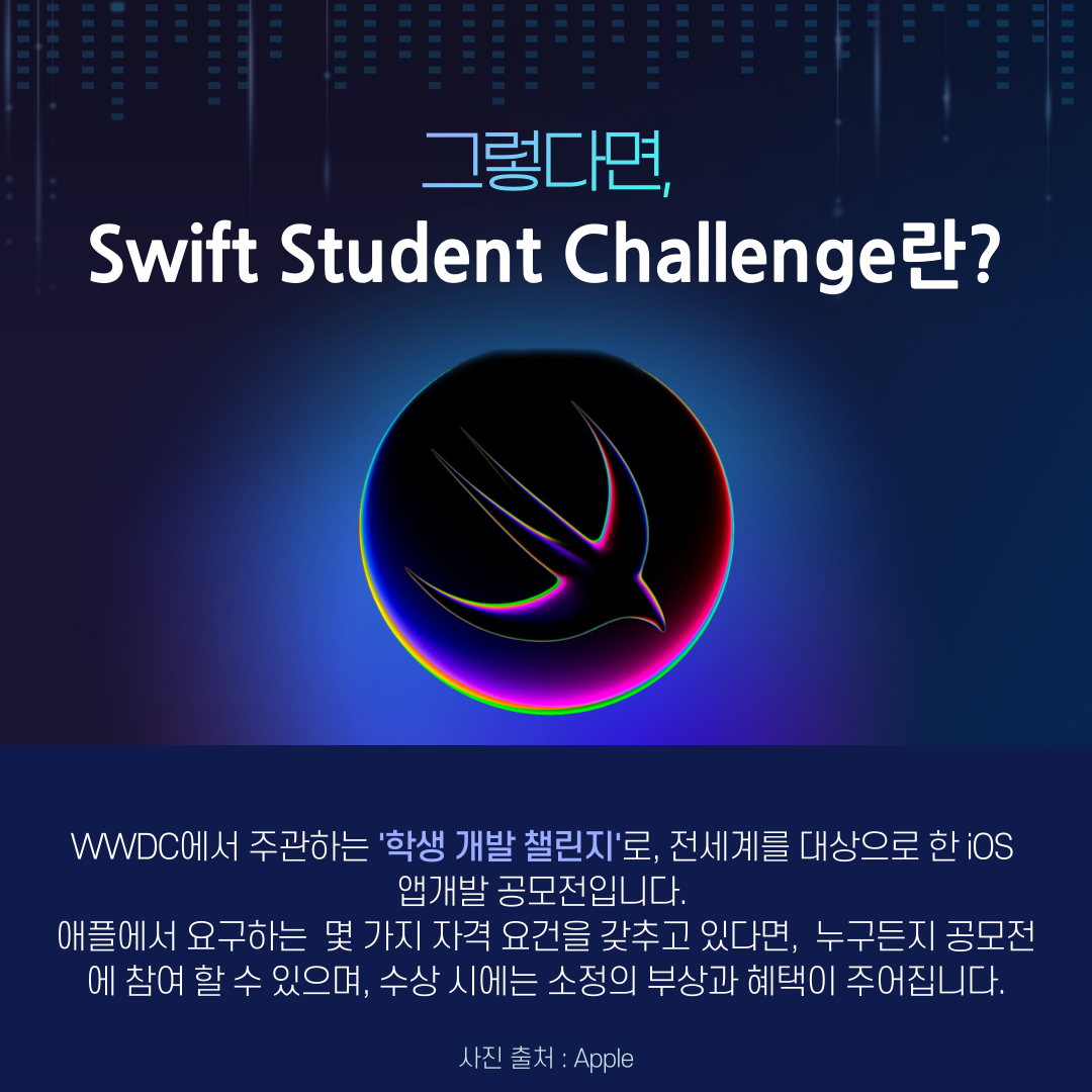 정식 명칭은 'Swift Student Challenge'로, 위에서 언급한 WWDC에서 주관하는 '학생 개발 챌린지'입니다.