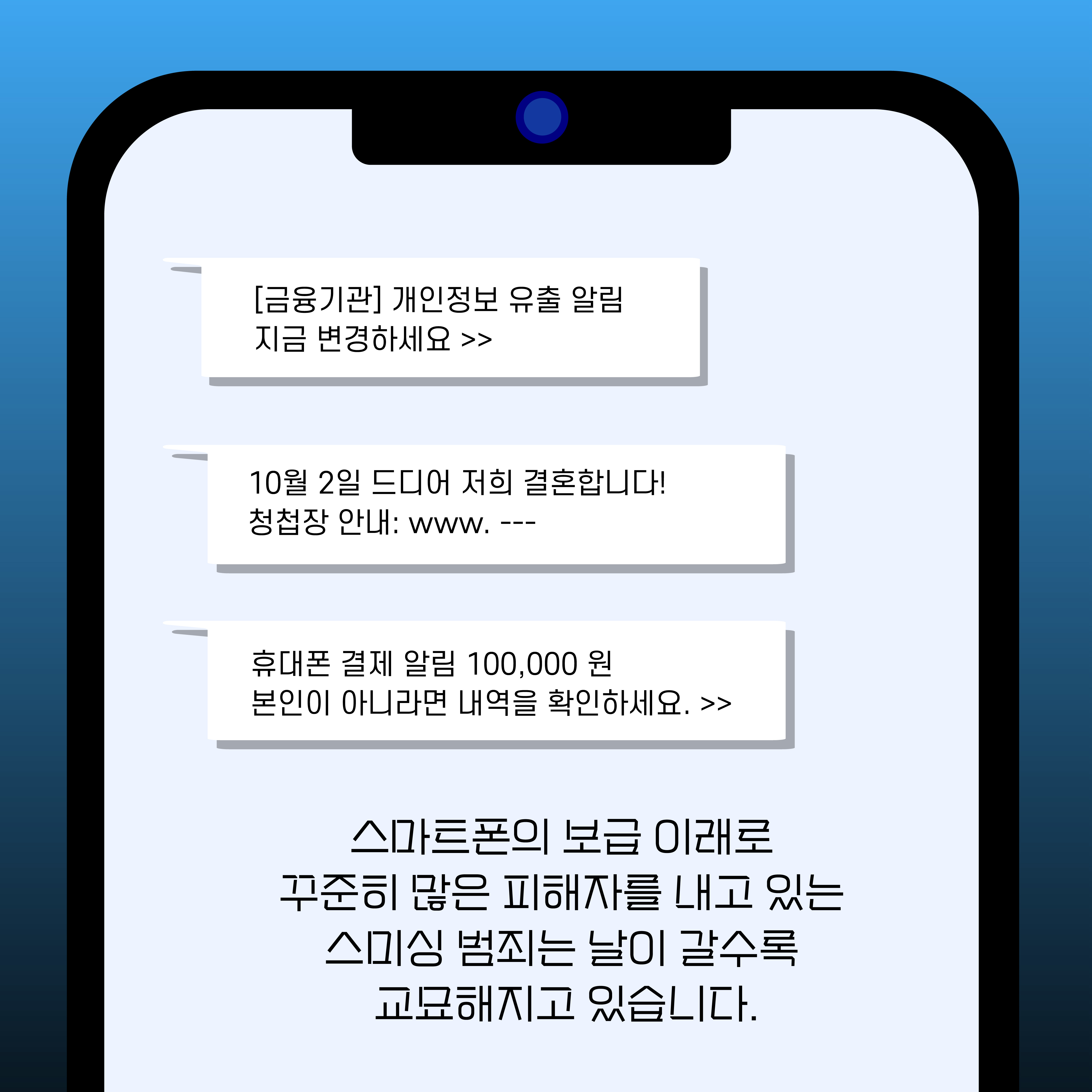 스미싱은 문자를 뜻하는 SMS와 피싱의 합성어입니다.