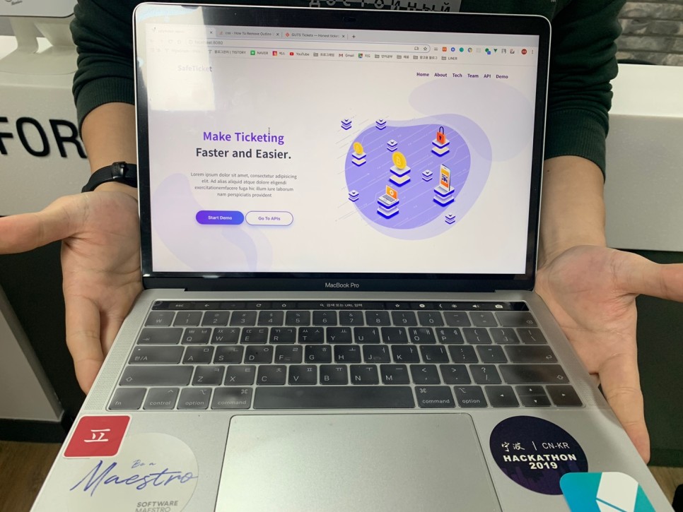 그리고 저희는 어플만 제공하는 것이 아니라 인터파크 같은 티켓 예매 플랫폼 SDK라는 모듈을 장착할 수 있는 기능을 구현해줄 웹사이트와 전체적인 블록체인 네트워크 구축한 상태입니다.