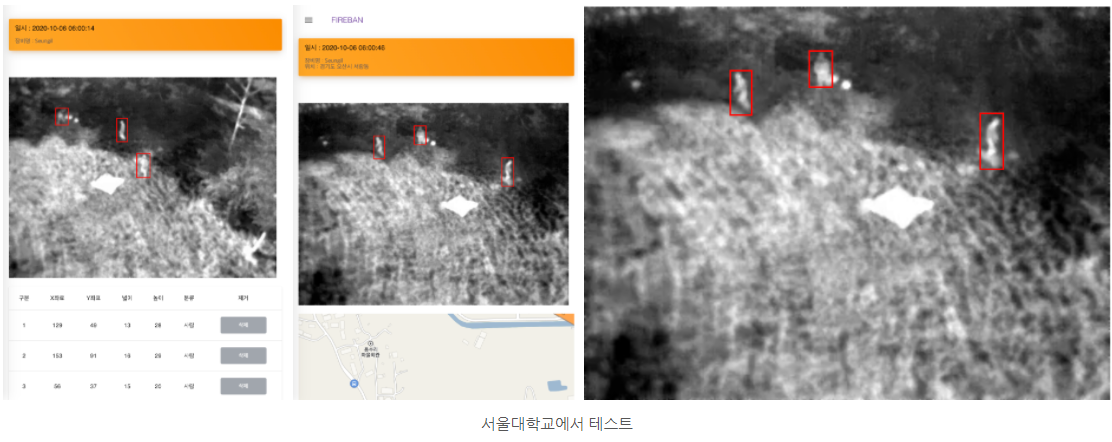 김동진:AI 쪽 비전 알고리즘의 경우 사람의 온도 대역을 설정해 열화상 카메라의 온도 값들이 사람 이미지를 강조해 줄 수 있도록 하는 작업 중이고, 탐지 쪽은 서버 쪽에서 임베디드 기기에 인공지능 모델을 올릴 때 제한된 환경에서도 동작 가능하도록 경량화 작업을 진행 중입니다.