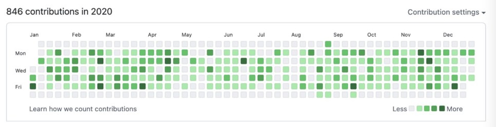 깃허브의 잔디심기 기능과 비슷한 기능인데요.