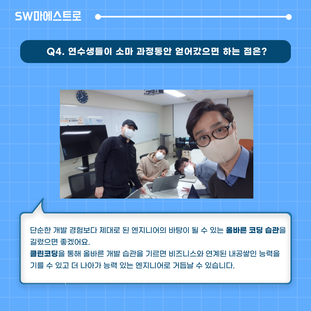 클린코딩을 통해 올바른 개발 습관을 기르며 연수생들이 비즈니스와 연계된