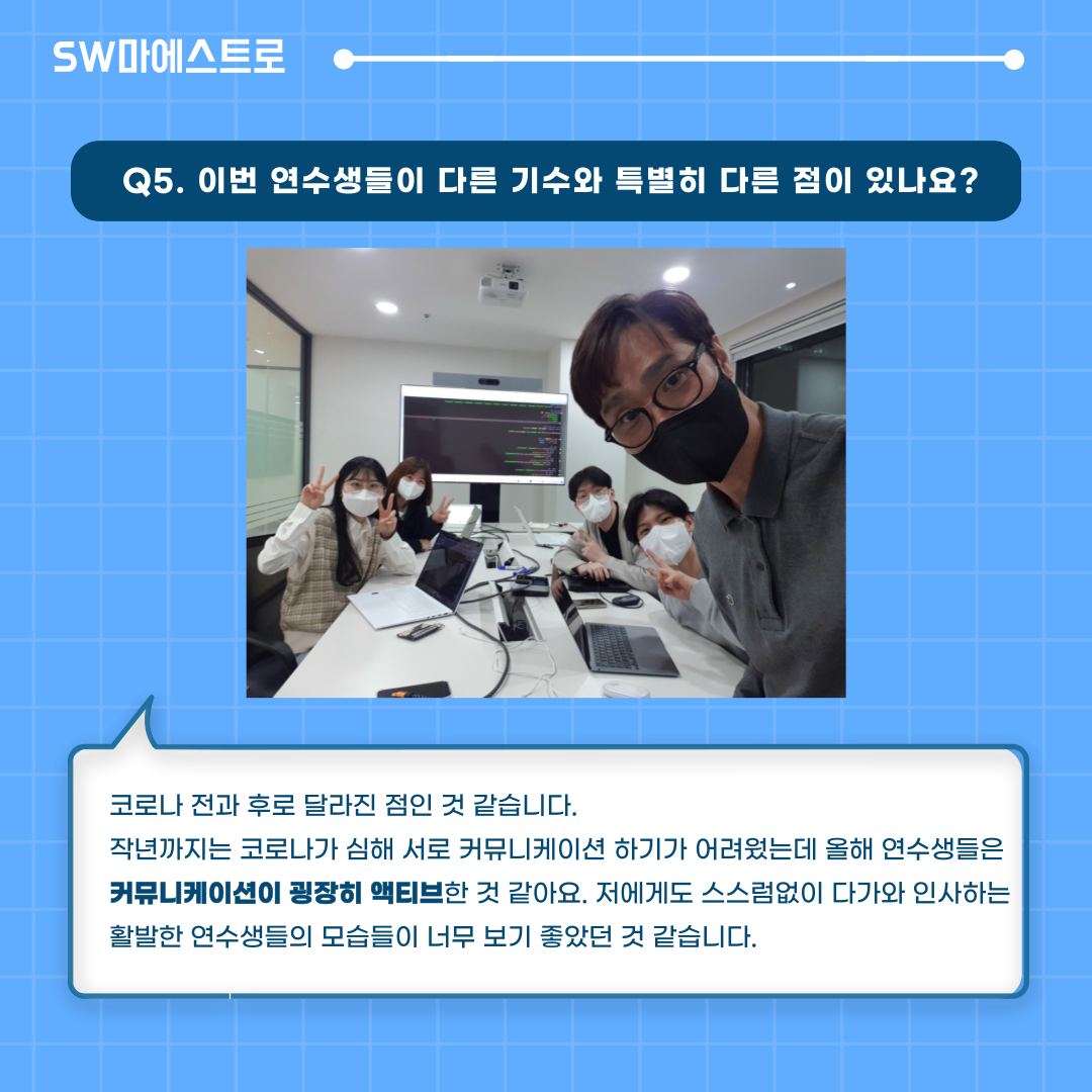 코로나 전과 후로 달라진 점인 것 같습니다. 작년까지는 코로나가 심해 서로 커뮤니케이션