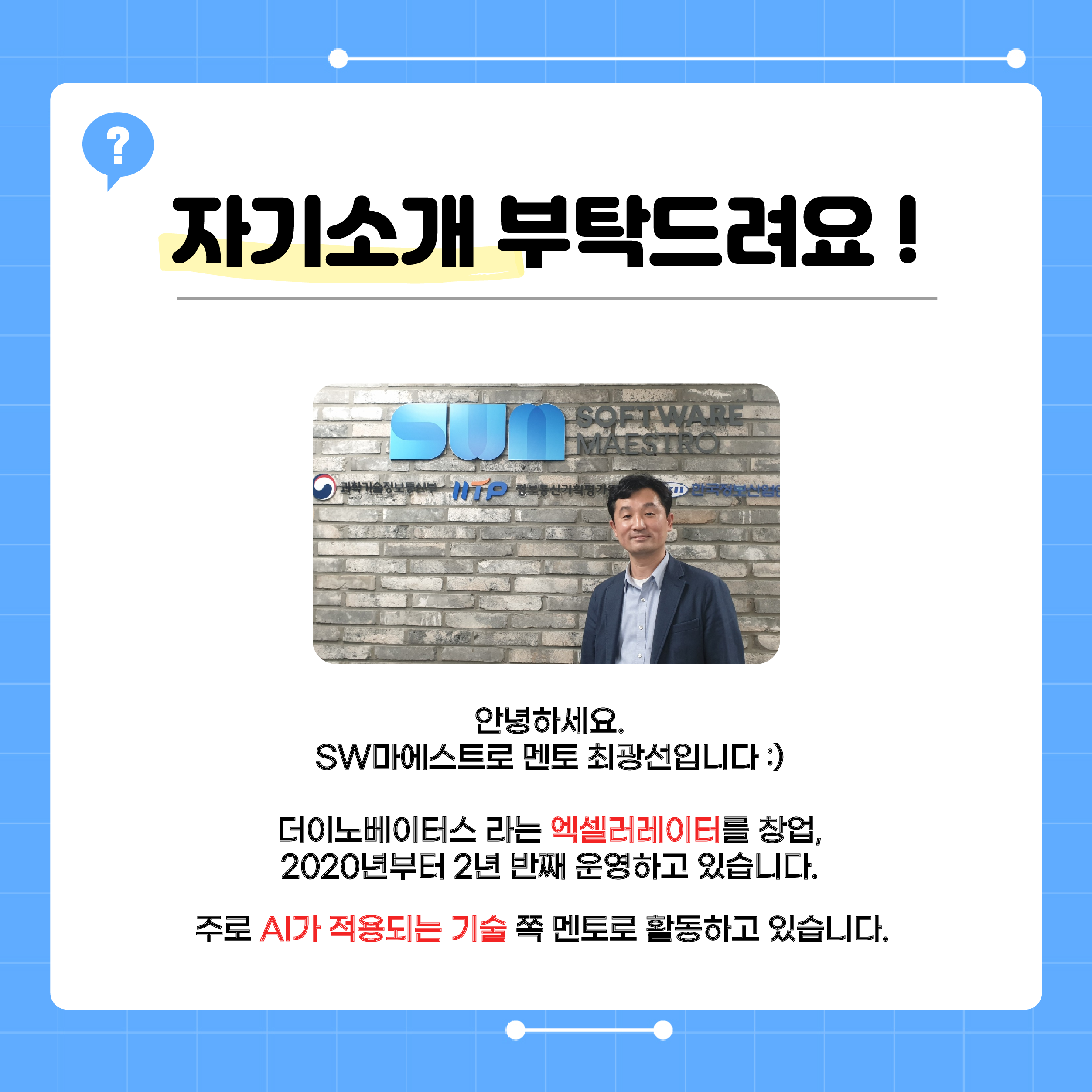 안녕하세요. SW마에스트로 멘토 최광선입니다.
