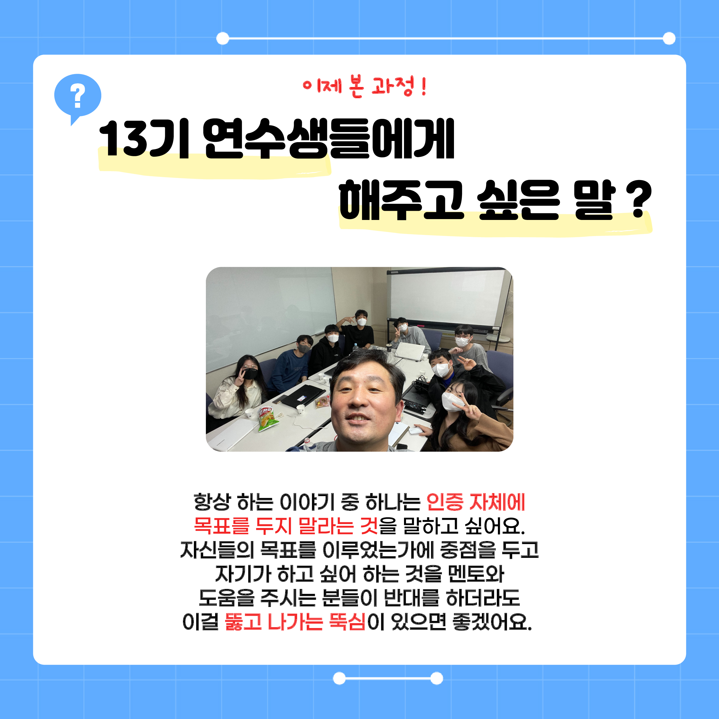 우리가 연수생들을 뽑는 틀이 있는데, 대부분 그 틀만 보는 것 같아요.