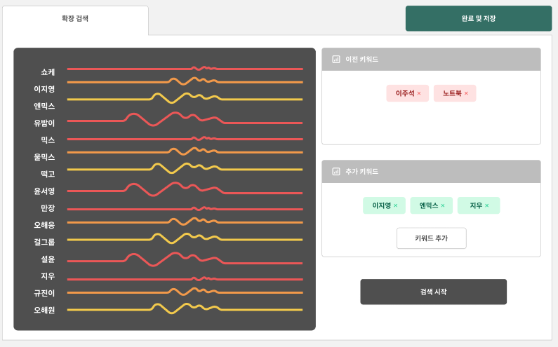 검색된 악플들의 키워드를 뽑아내고