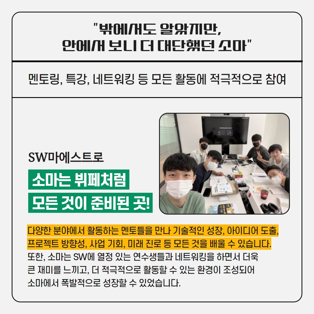 또한, 소마는 SW에 열정 있는 연수생들과 네트워킹을 하면서 더욱