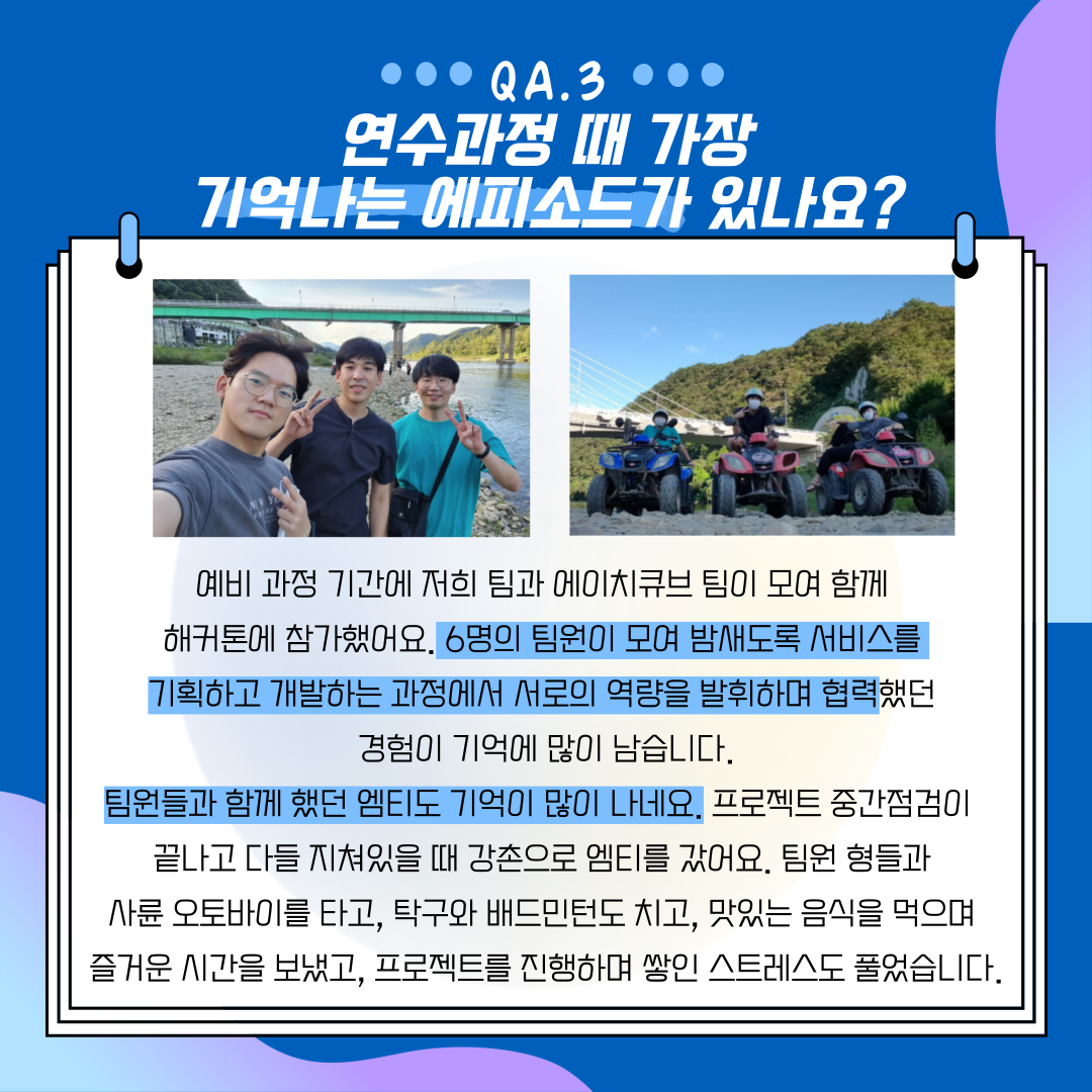 QA.3 연수과정 때 가장 기억나는 에피소드가 있나요?