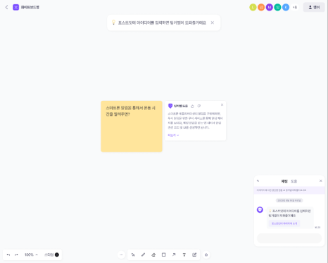 공동 편집이 되는 화이트보드에서 생성AI 어시스턴트가 아이디에이션에 대한 도움을 주는 서비스입니다.