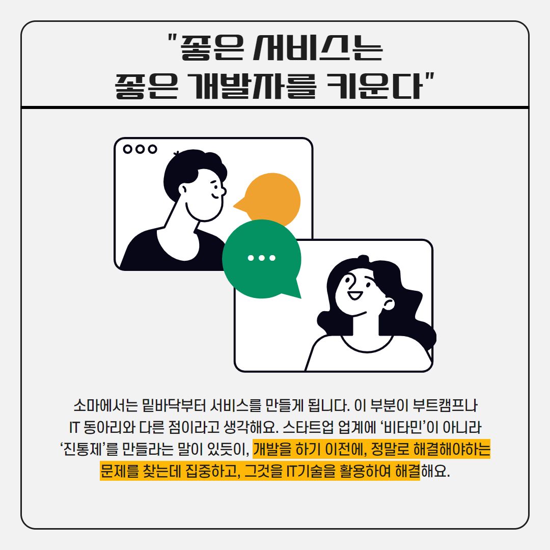 IT 동아리와 다른 점이라고 생각해요. 스타트업 업계에 ‘비타민’이 아니라