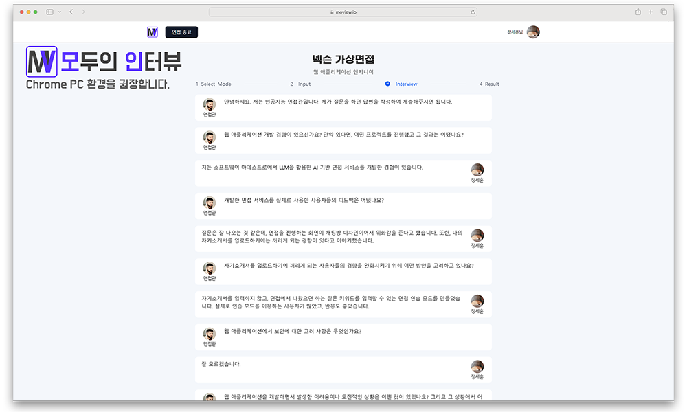 2. 실제 면접장과 유사하게, 실시간으로 상황에 맞는 꼬리 질문 제공