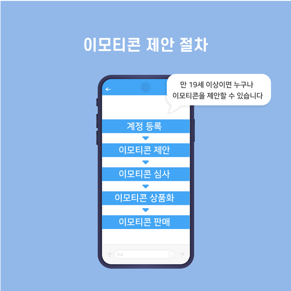 누구나 이모티콘 작가가 될 수 있고, 어디서든 이모티콘을 사용할 수 있습니다.