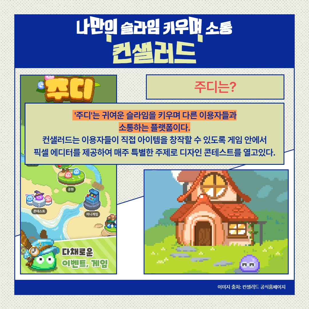 '주디'는 귀여운 슬라임을 키우며 다른 이용자들과 소통하는 플랫폼입니다.