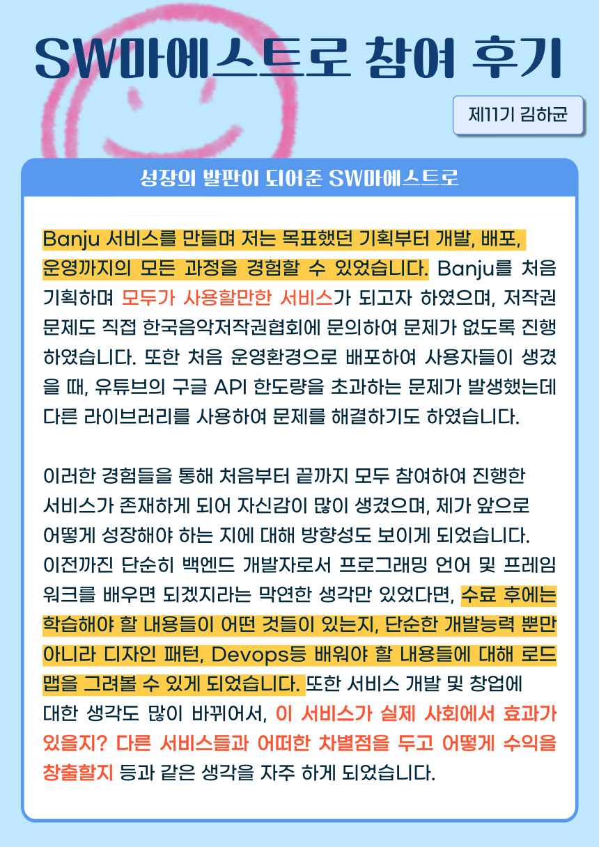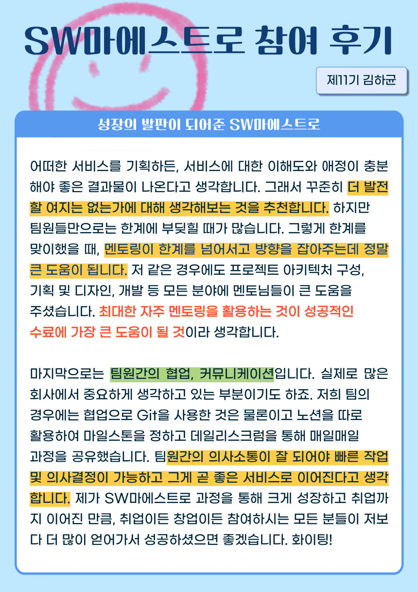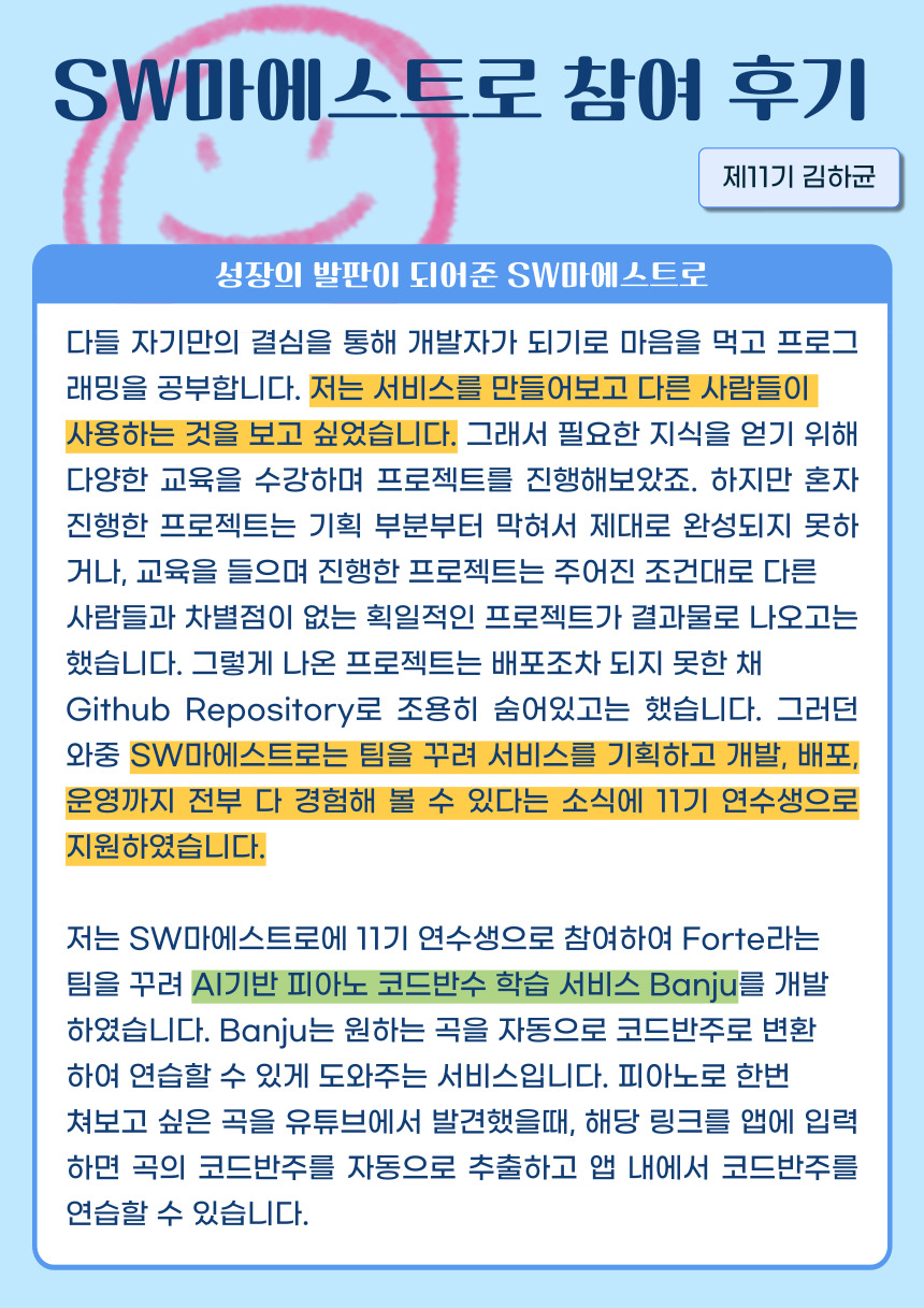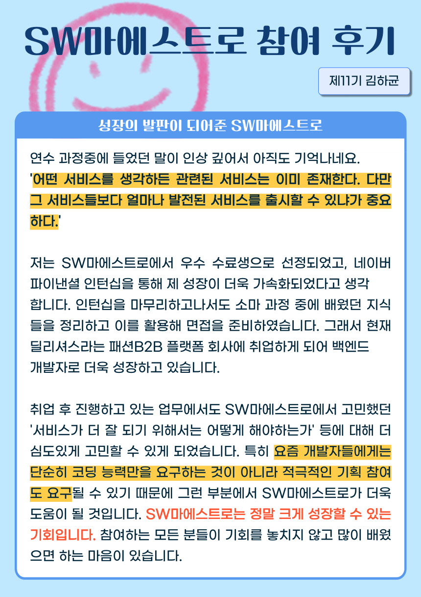 [제11기 김하균] 성장의 발판이 되어준 SW마에스트로