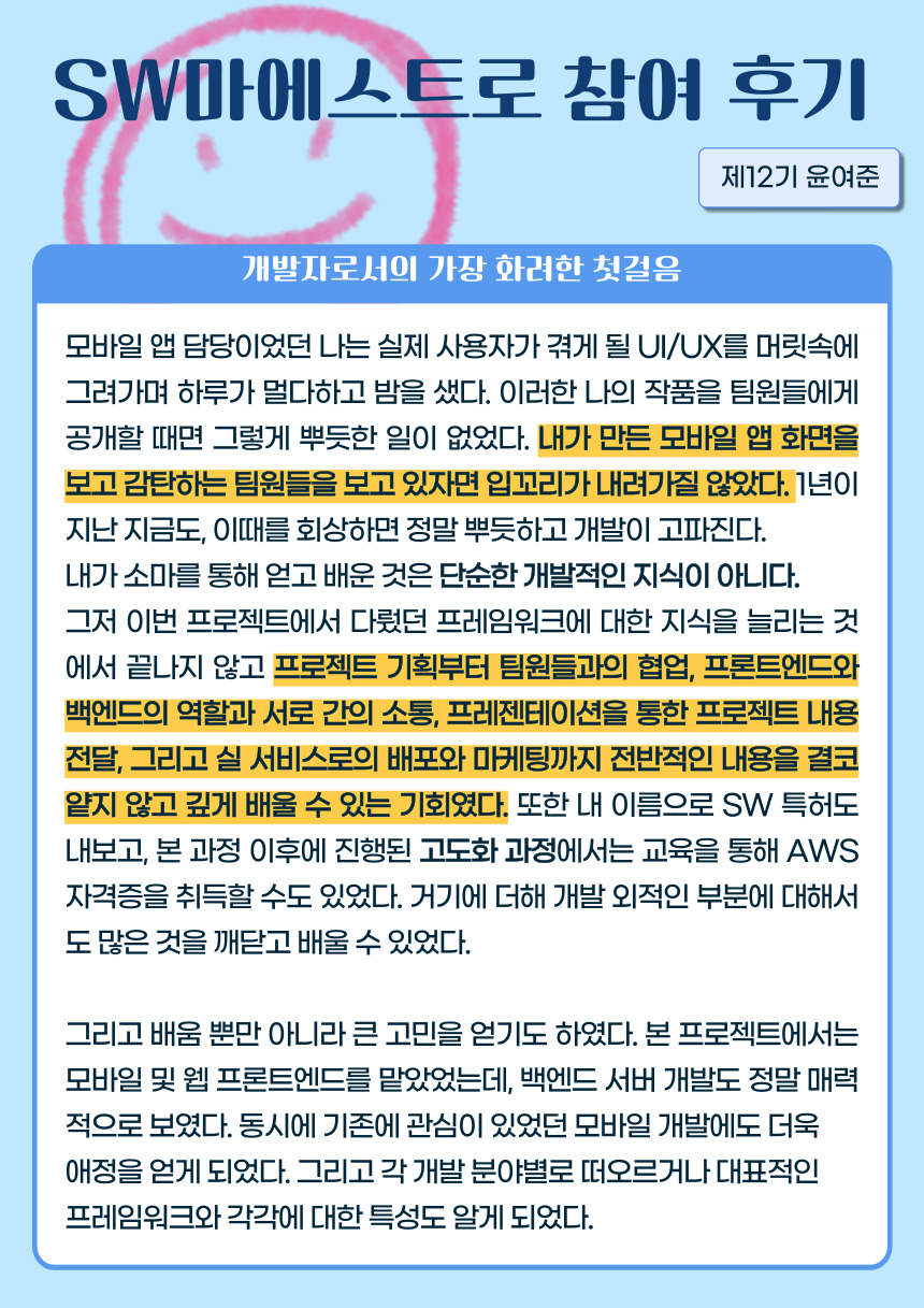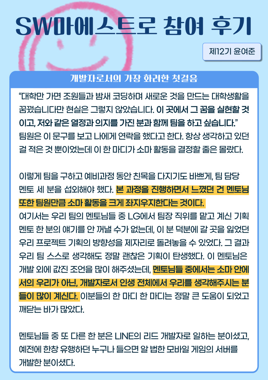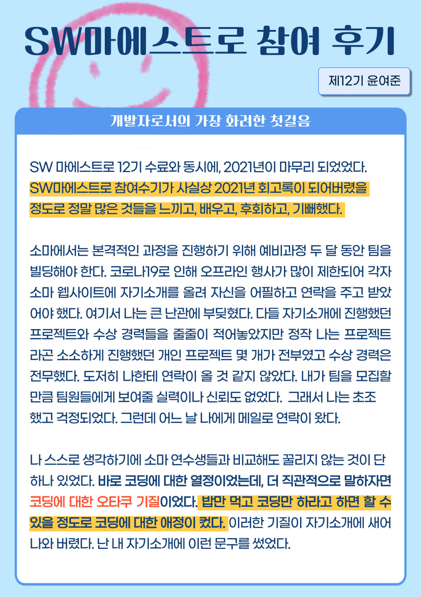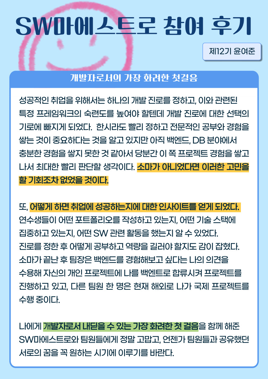 [제12기 송영범] 꿈을 위한 첫걸음, 인생의 변곡점, SW마에스트로