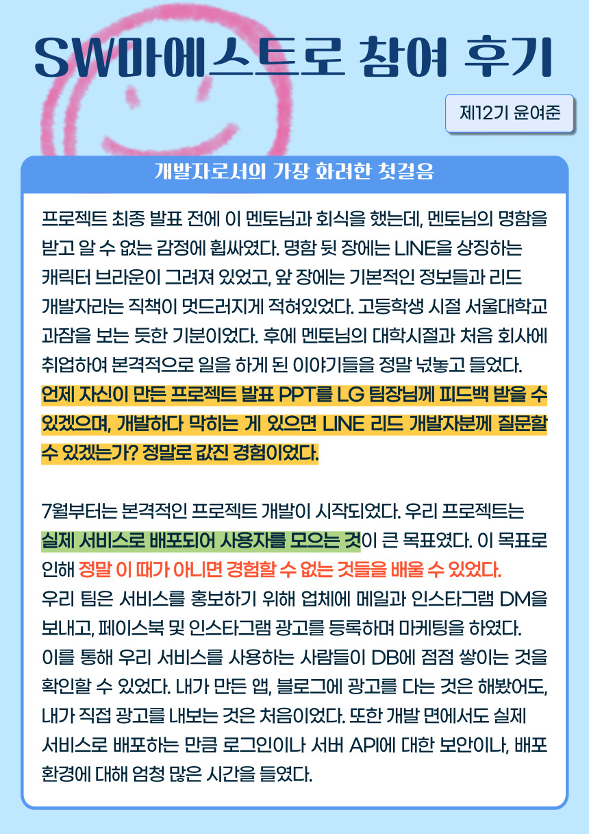 [제12기 윤여준] 개발자로서의 가장 화려한 첫걸음