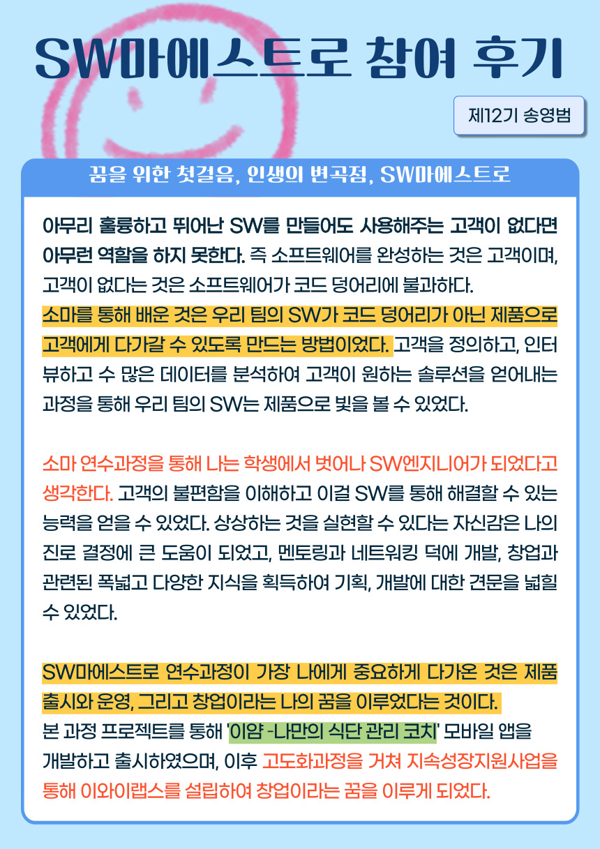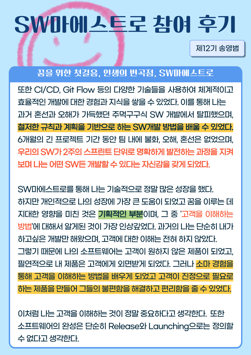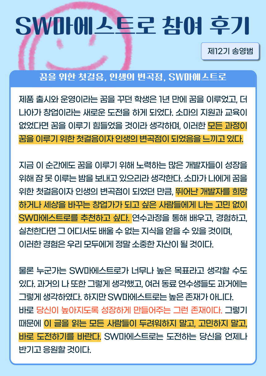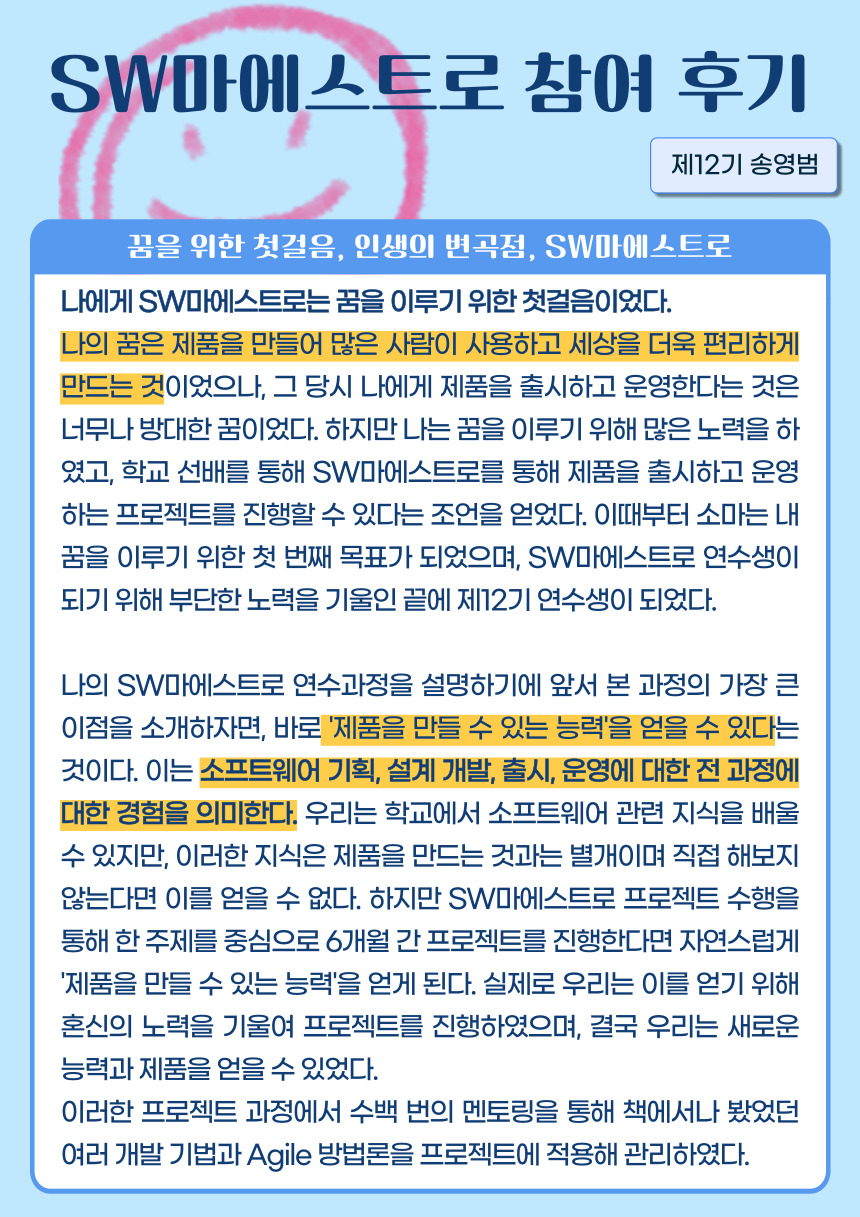 [제12기 송영범] 꿈을 위한 첫걸음, 인생의 변곡점, SW마에스트로