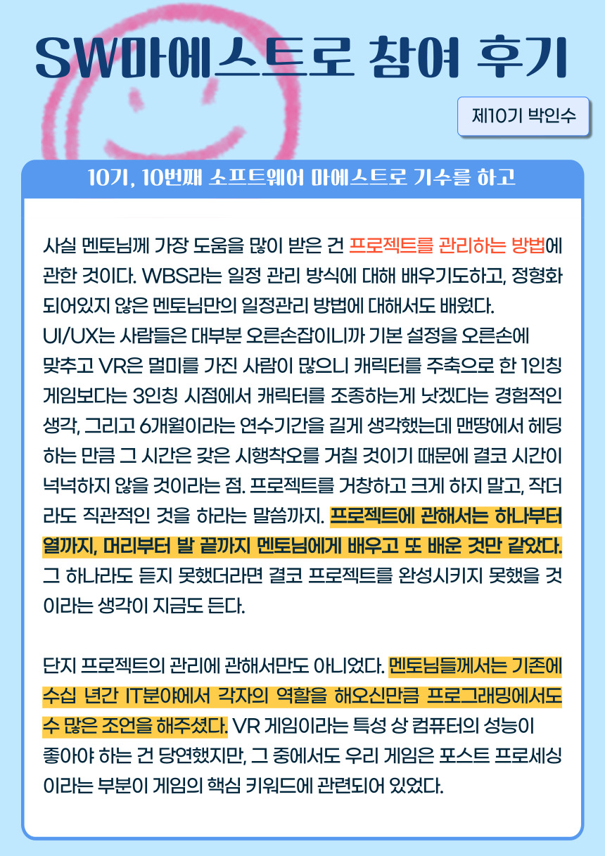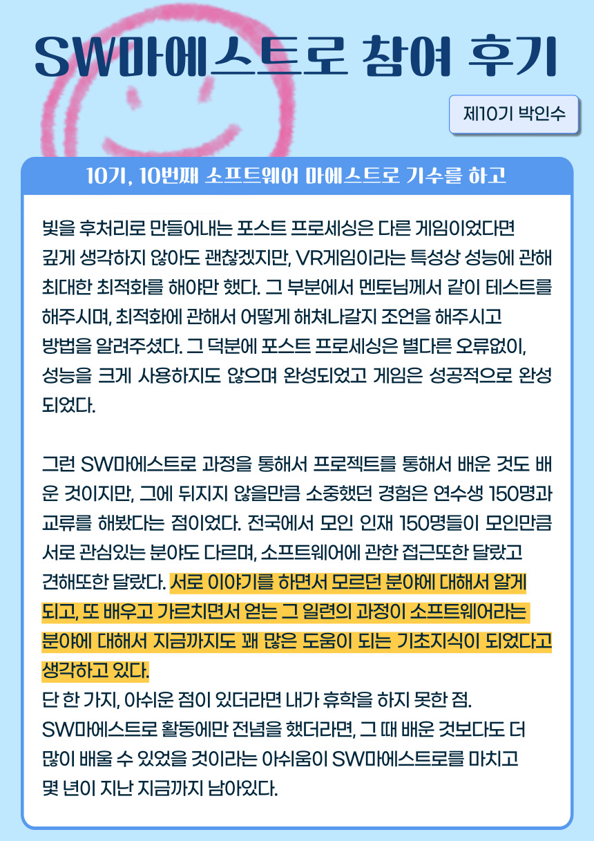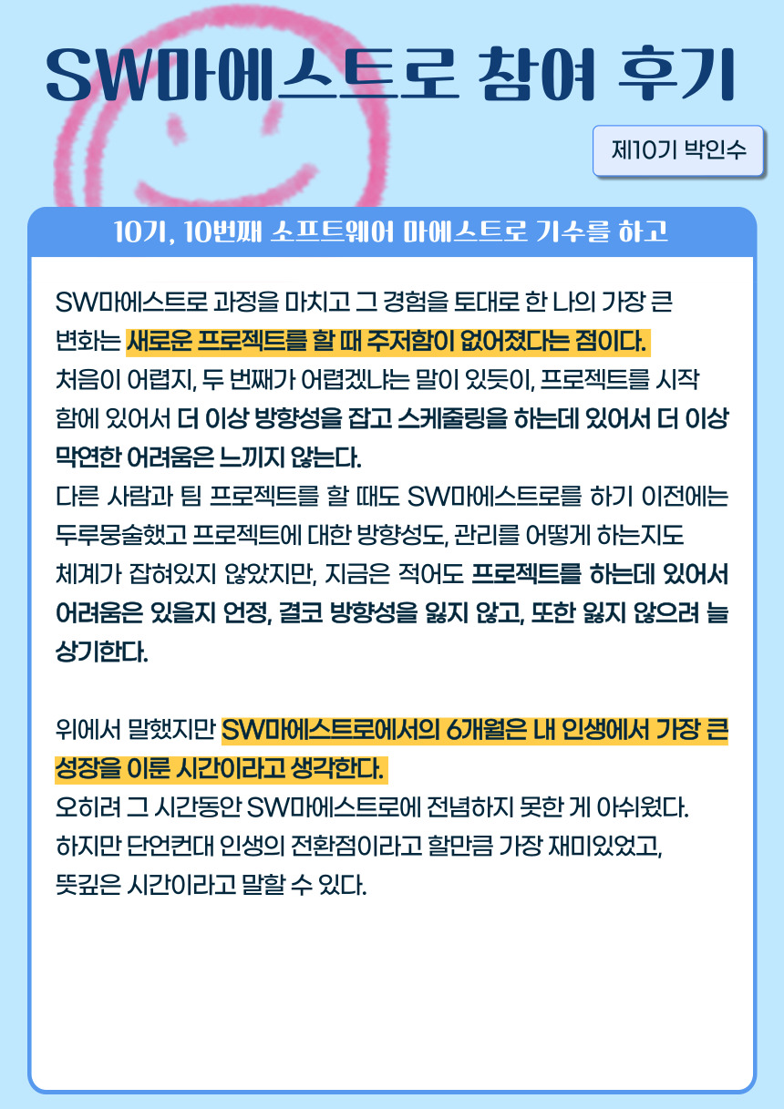[제10기 박인수] 10기, 10번째 소프트웨어 마에스트로 기수를 하고