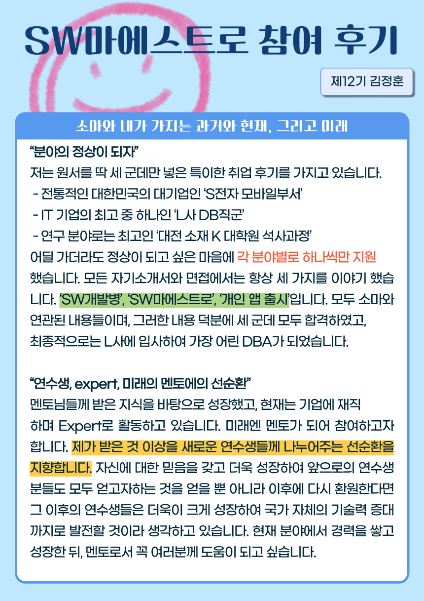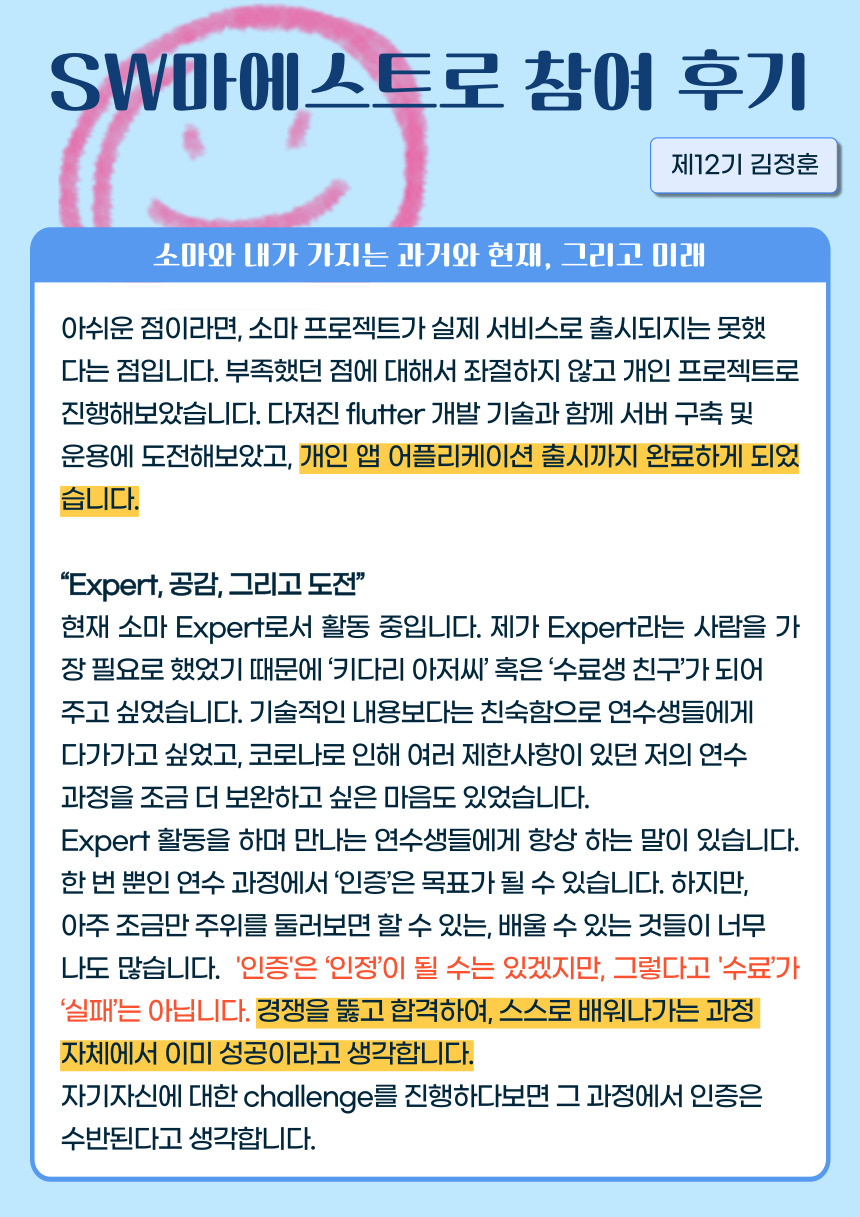 [제12기 김정훈] 소마와 내가 가지는 과거와 현재, 그리고 미래