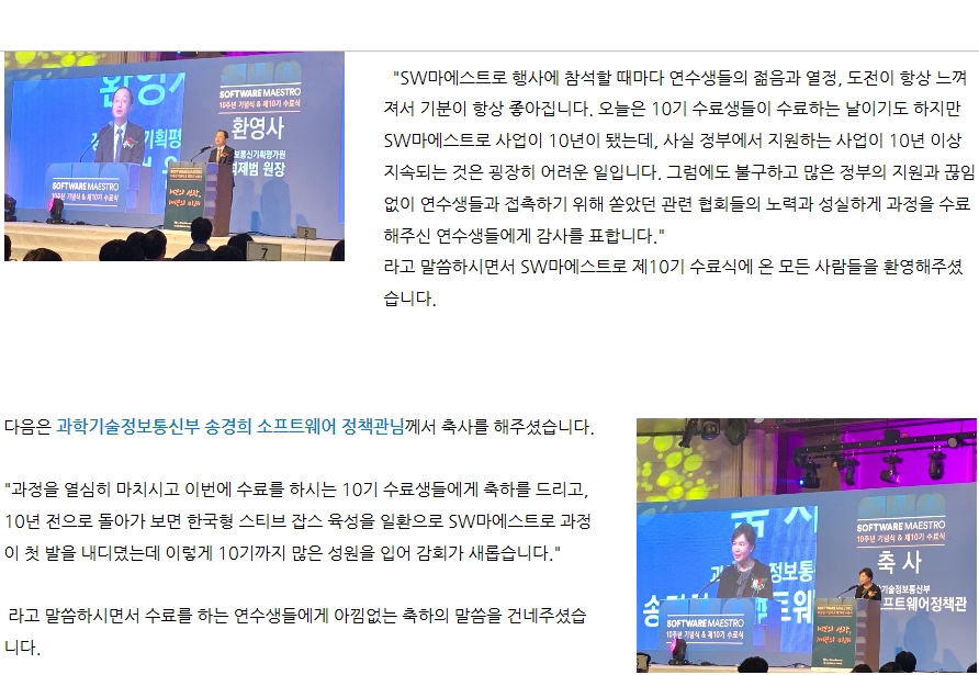 2010년 제1기를 시작으로 어느덧 제10기가 있기까지 수료생들과 많은 멘토들을 포함하여 SW마에스트로를 위해 많은 분들이 자리를 빛내 주셨는데요.