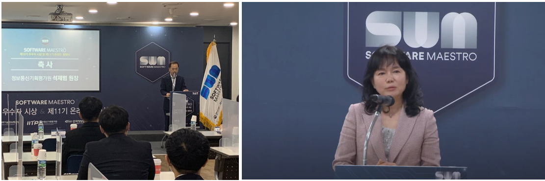 다음으로는 제10기 우수자들을 축하하고, 제11기 연수생들을 격려하기 위해 IITP 석제범 원장님의 환영사와 과학기술정보통신부 송경희 SW정책관님의 축사가 이어졌습니다.