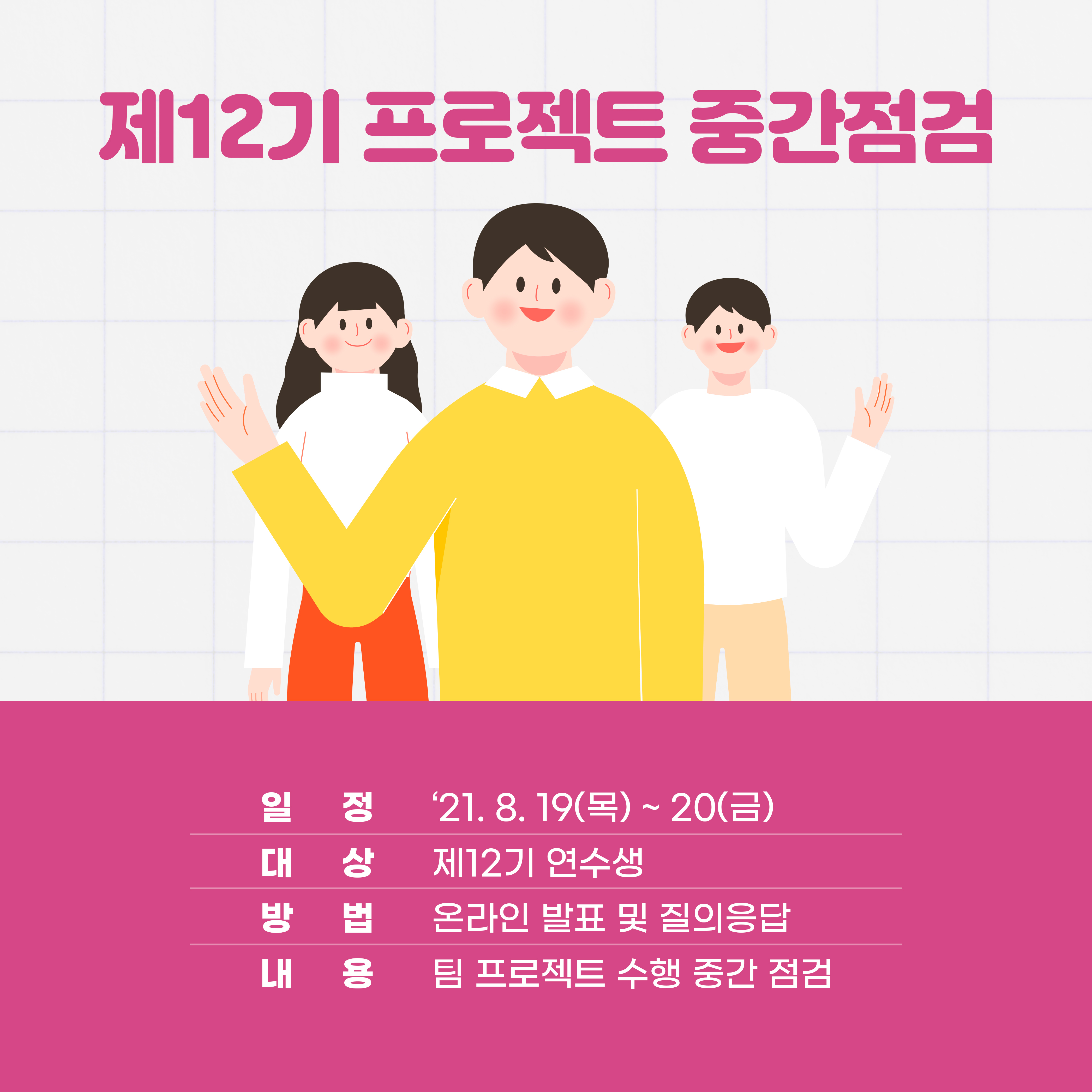 두 번째 일정으로는 '제12기 프로젝트 중간점검'이 있습니다.
