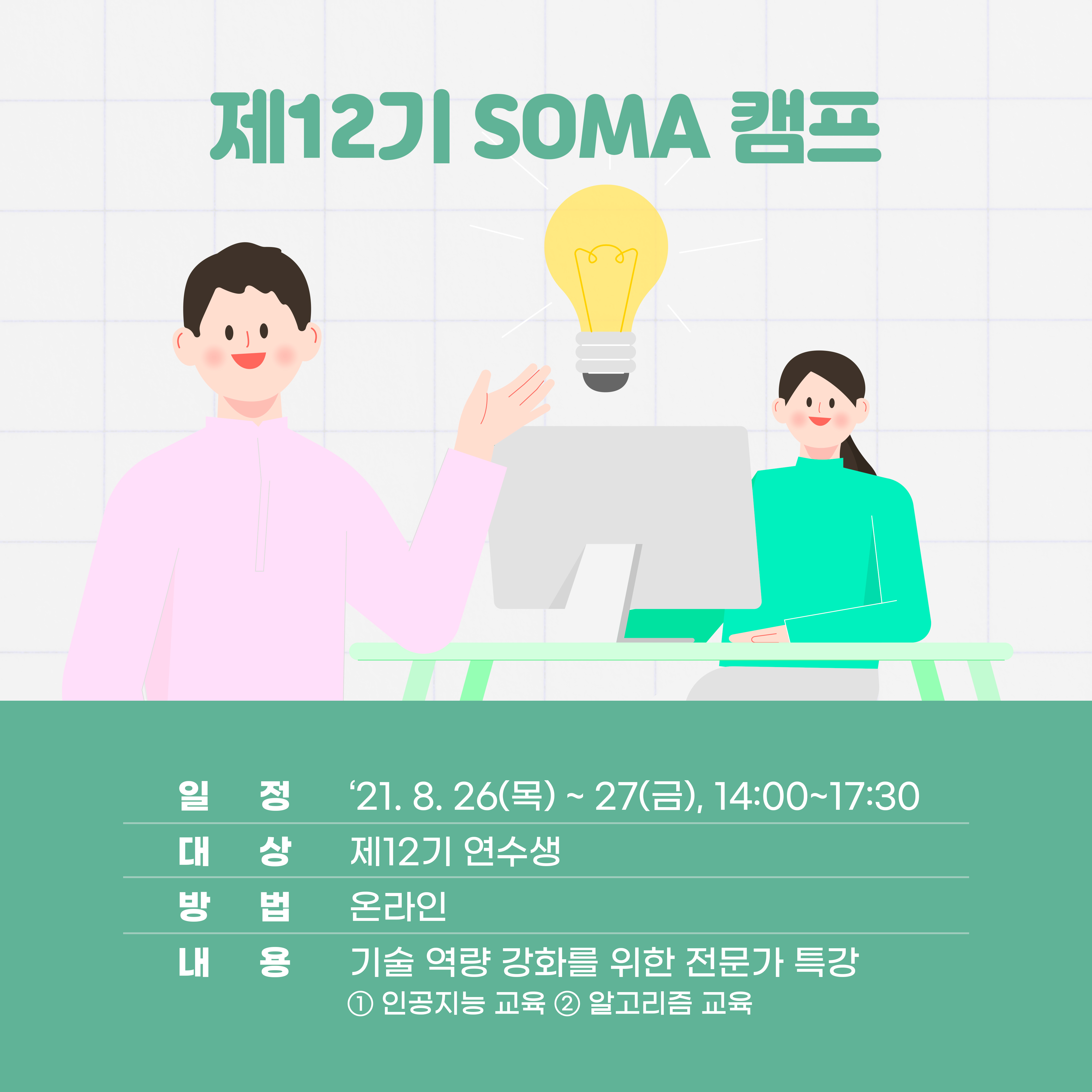 마지막으로 소개해드릴 8월의 행사는 '제12기 SOMA 캠프'입니다.