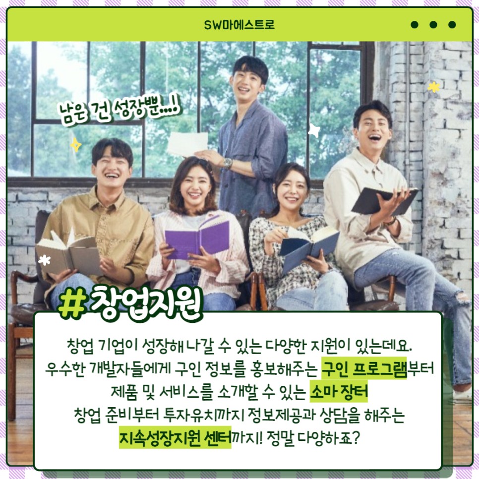 그래서 SW마에스트로에서는 창업 지원도 빵빵하게 준비했답니다.