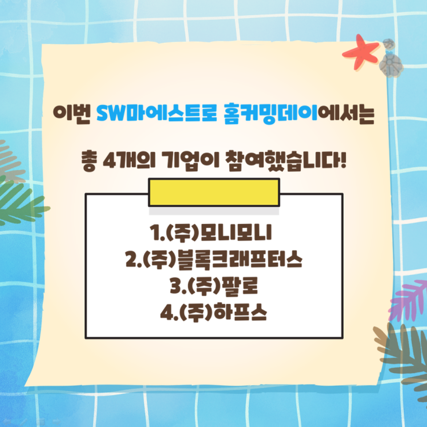 이번 SW마에스트로 홈커밍데이에는 총 4곳의 기업이 함께 참여했습니다.