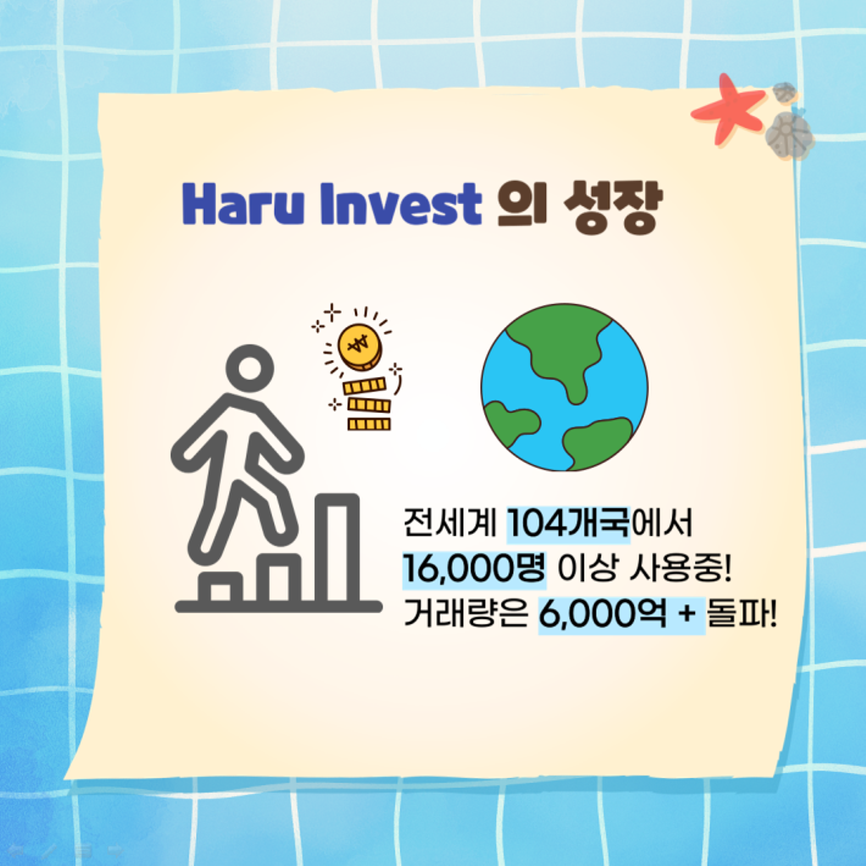 Haru Invest의 성장을 보면 전세계 104개국에서 16,000명 이상 유저들이 사용 중이라고 합니다.