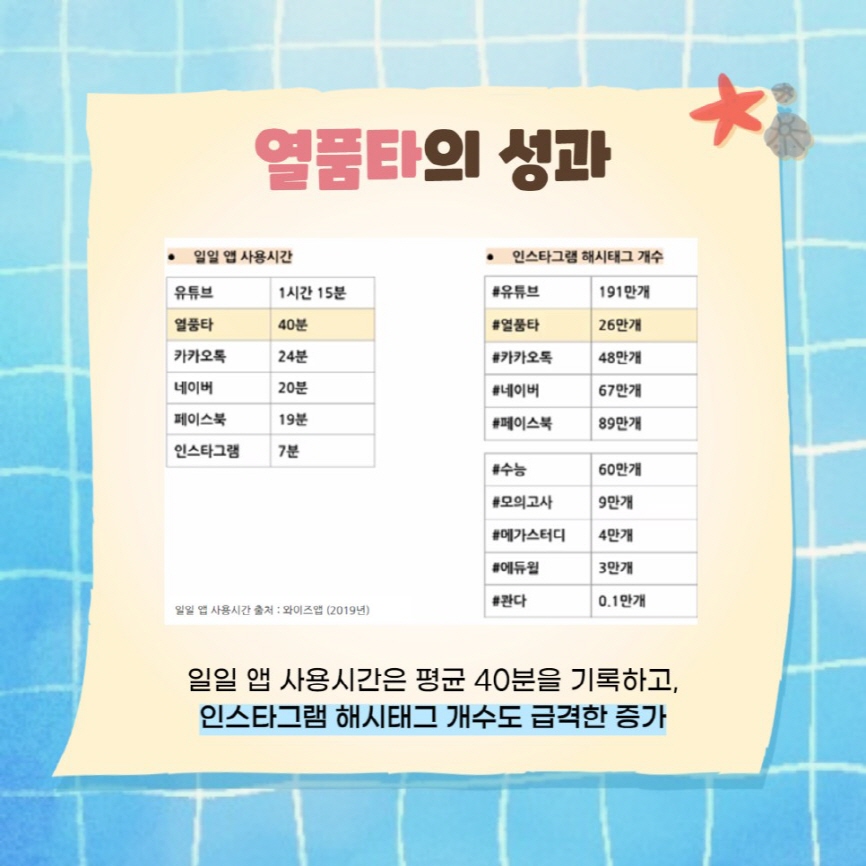 일일 앱 사용시간은 평균 40분을 기록하고, 인스타그램 해시태그도 ‘열품타’에 대한 것만