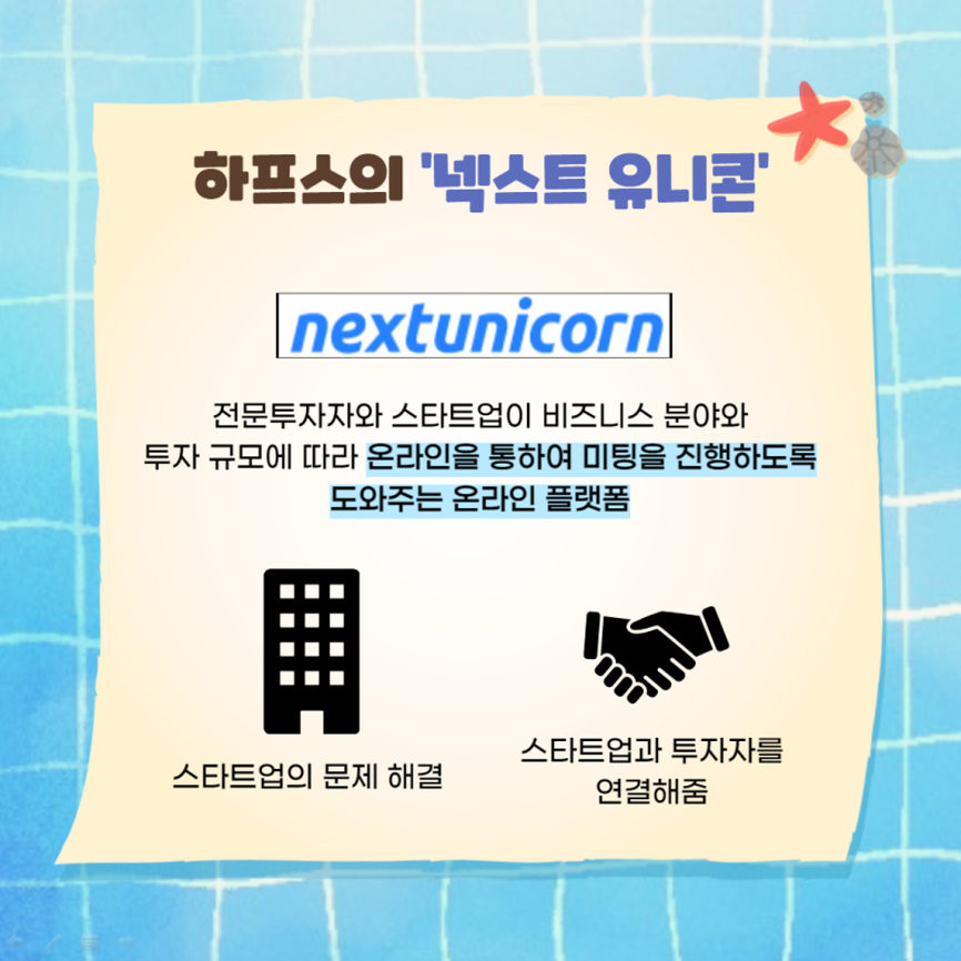 하프스에서 운영하는 넥스트 유니콘은 스타트업과 전문투자자를 연결하는 플랫폼입니다.