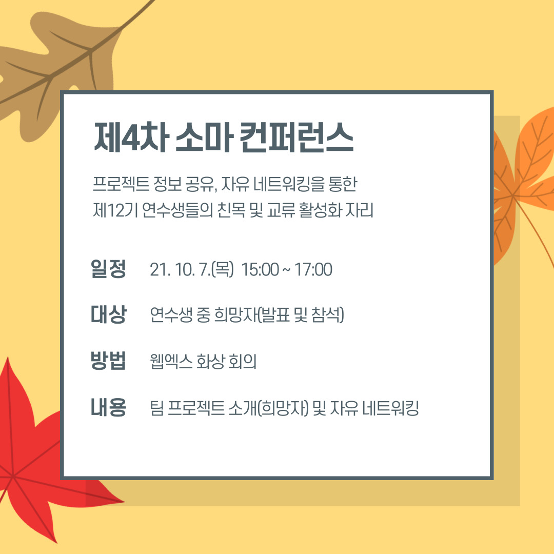 이번 ‘제4차 소마컨퍼런스’는 10월 7일 목요일 15시부터 약 2시간 동안 진행되며