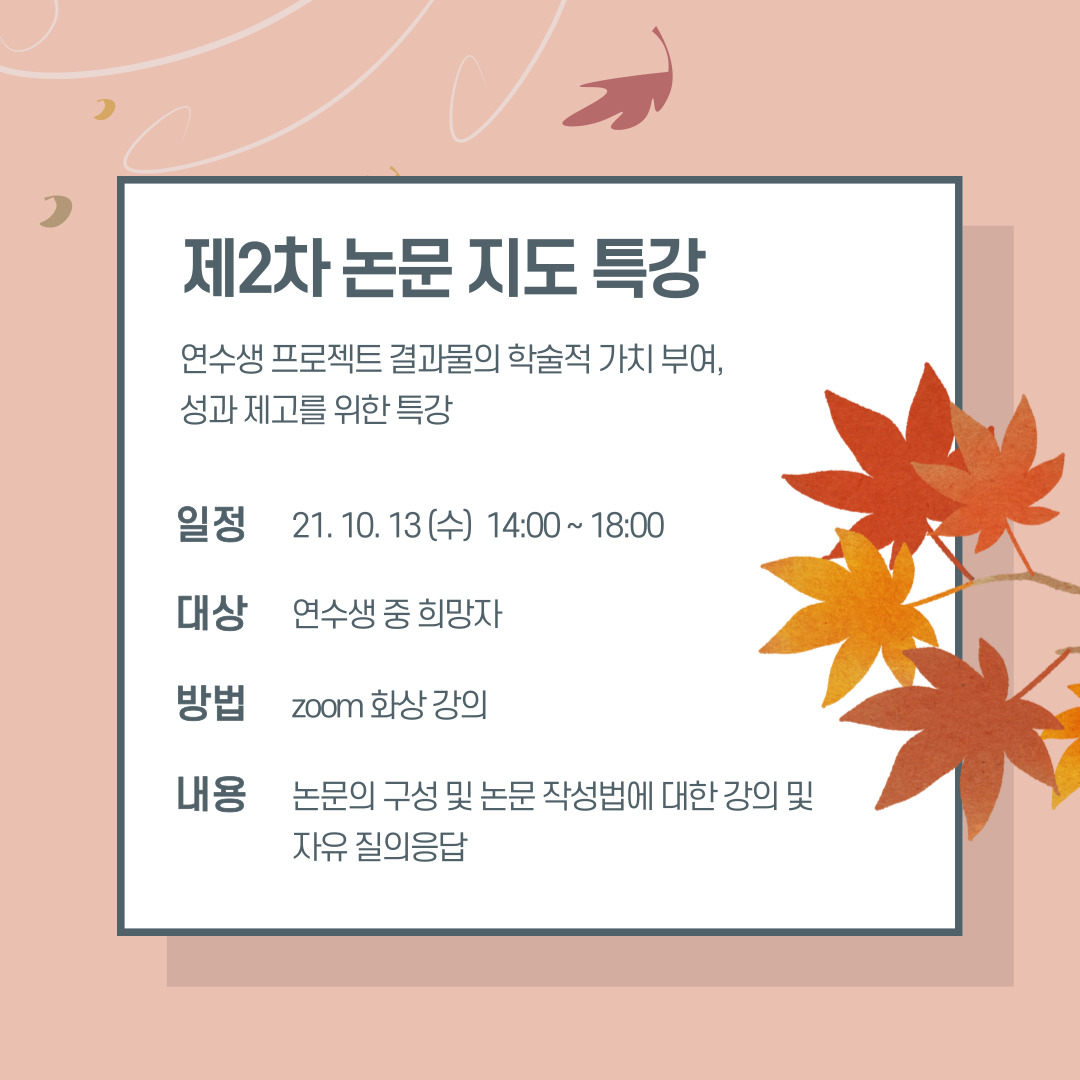 세 번째 행사는 ‘제2차 논문 지도 특강’입니다.