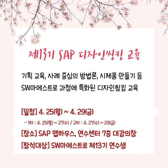 제13기 연수생을 대상으로 1차 SAP 디자인씽킹 교육이