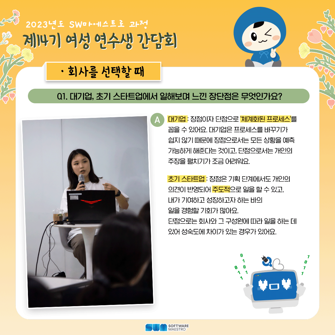 2023년도 SW마에스트로 과정 제14기 여성 연수생 간담회 현장 리뷰!